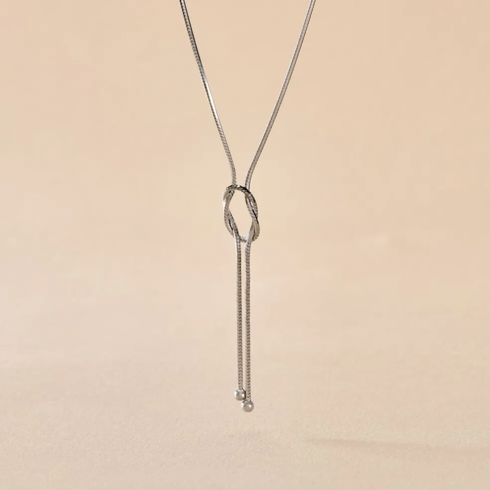 Collier Argent Blanc 925/1000 Forme Cravate Noeud Marin Maille Serpent 42cm
