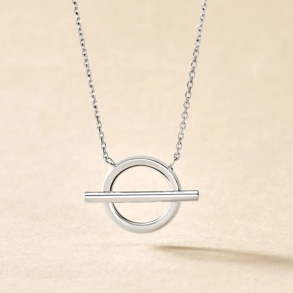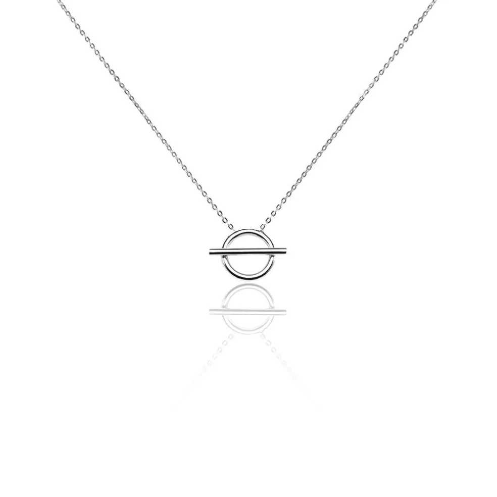 Collier Argent Blanc 925/1000 Cercle Ajoure Barrette Horizontale Maille Forcat 44.5cm