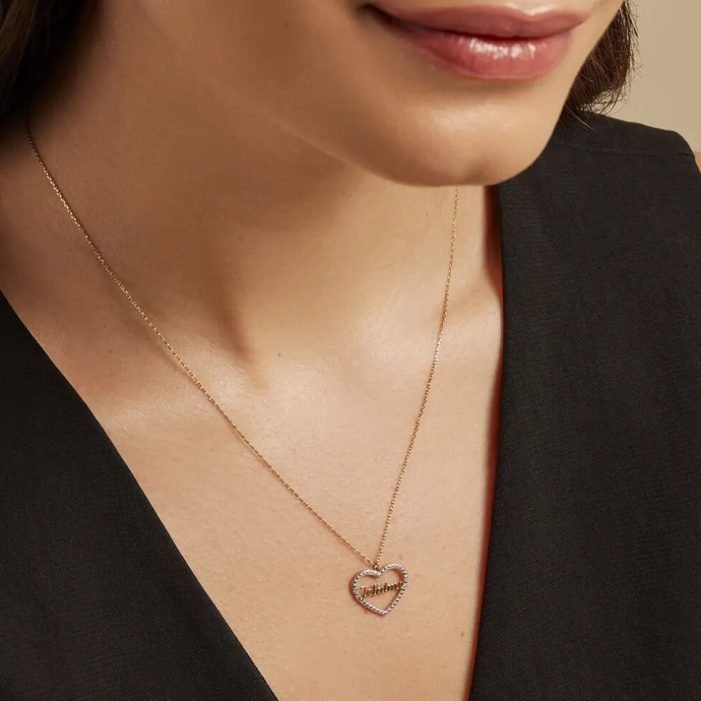 Collier Or Jaune 375/1000 C艙ur Ajoure Message Pavage Diamants Maille Forcat 42+3cm