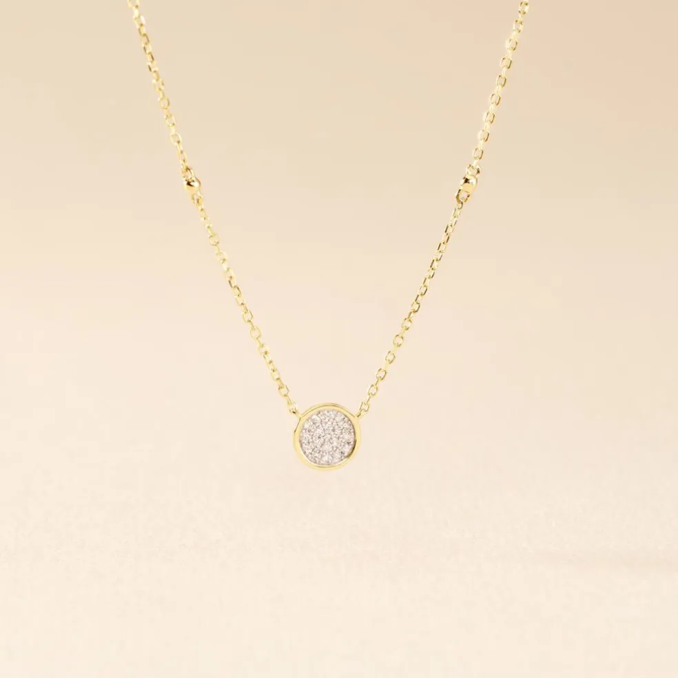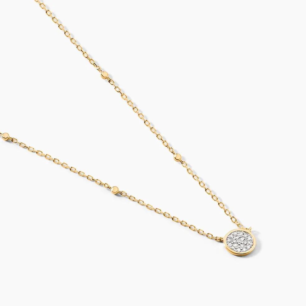 Collier Or Jaune 375/1000 Forme Cercle Pavage Diamants Maille Forçat Motif Boule 42cm