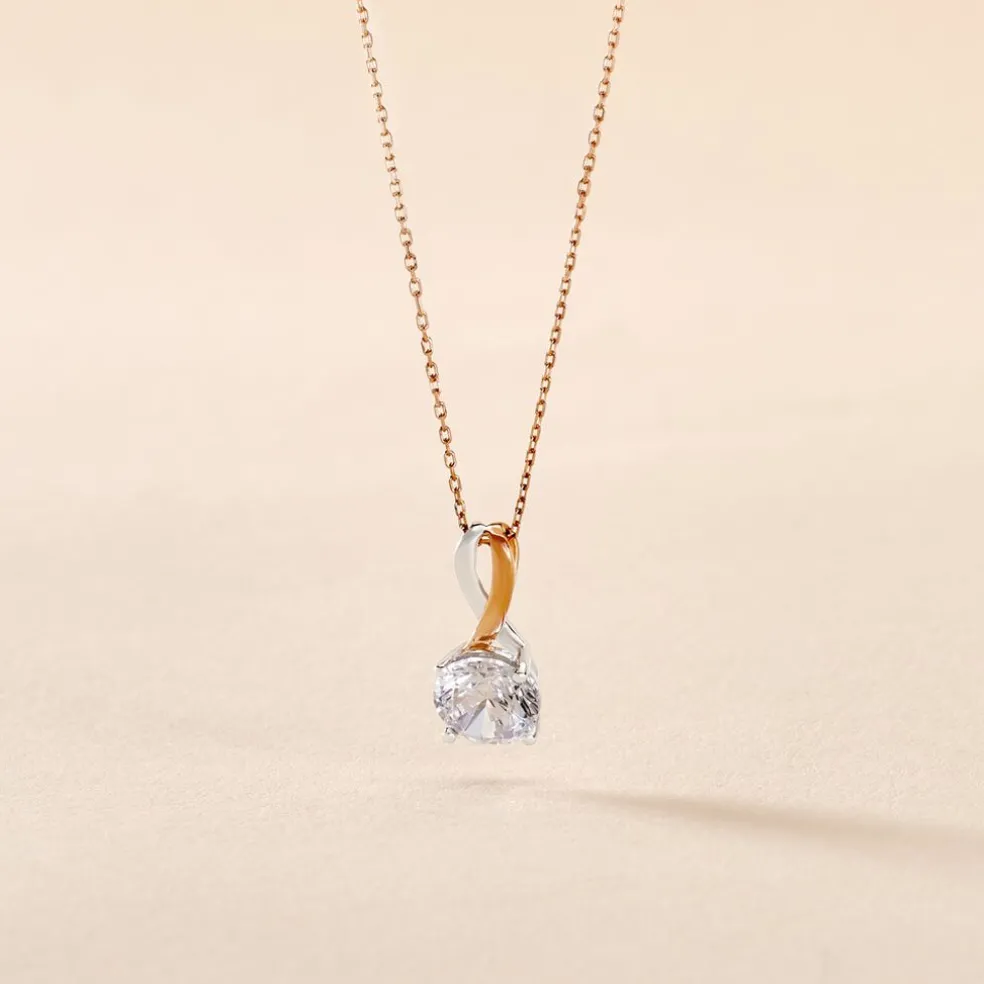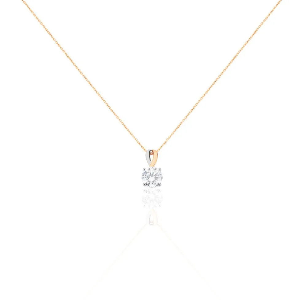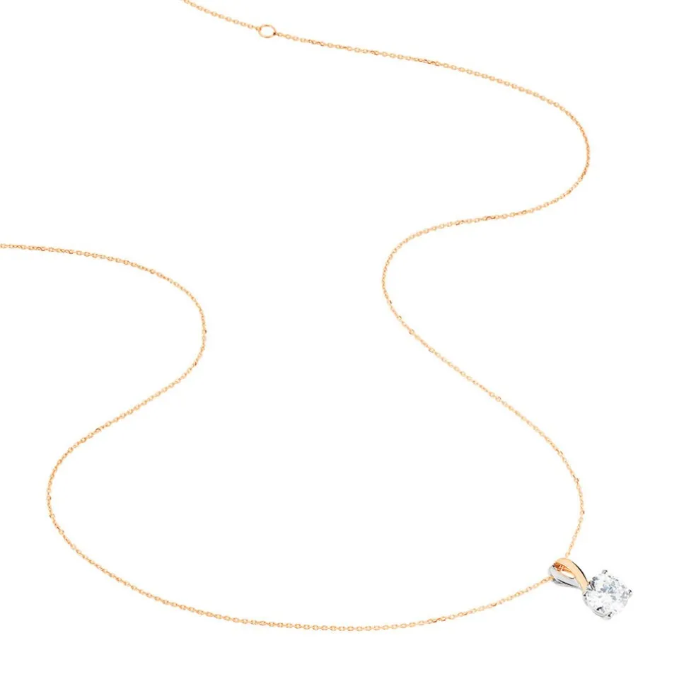 Collier Or Bicolore Blanc Et Rose 375/1000 Oxyde De Zirconium Central 6.5mm 42cm