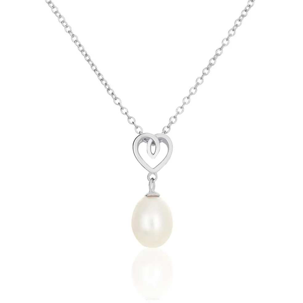 Collier Argent Blanc 925/1000 Coeur Perle De Culture Nacre 7-7.5mm 45cm