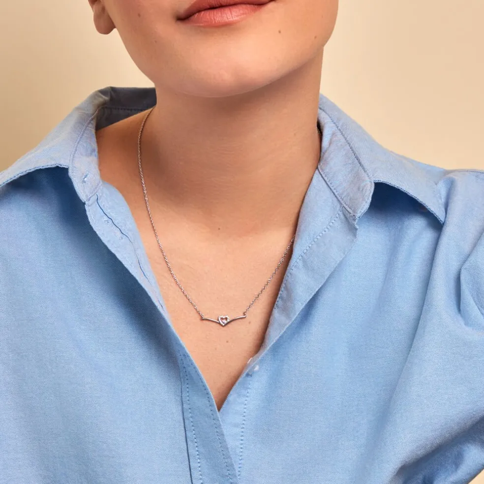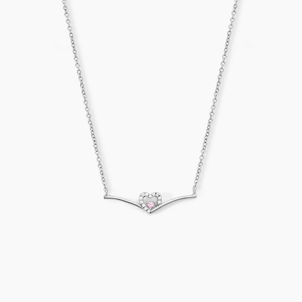 Collier Argent Blanc 925/1000 Aile De Mouette Et C艙ur Oxyde De Zirconium Rose Maille Forçat 42+3cm