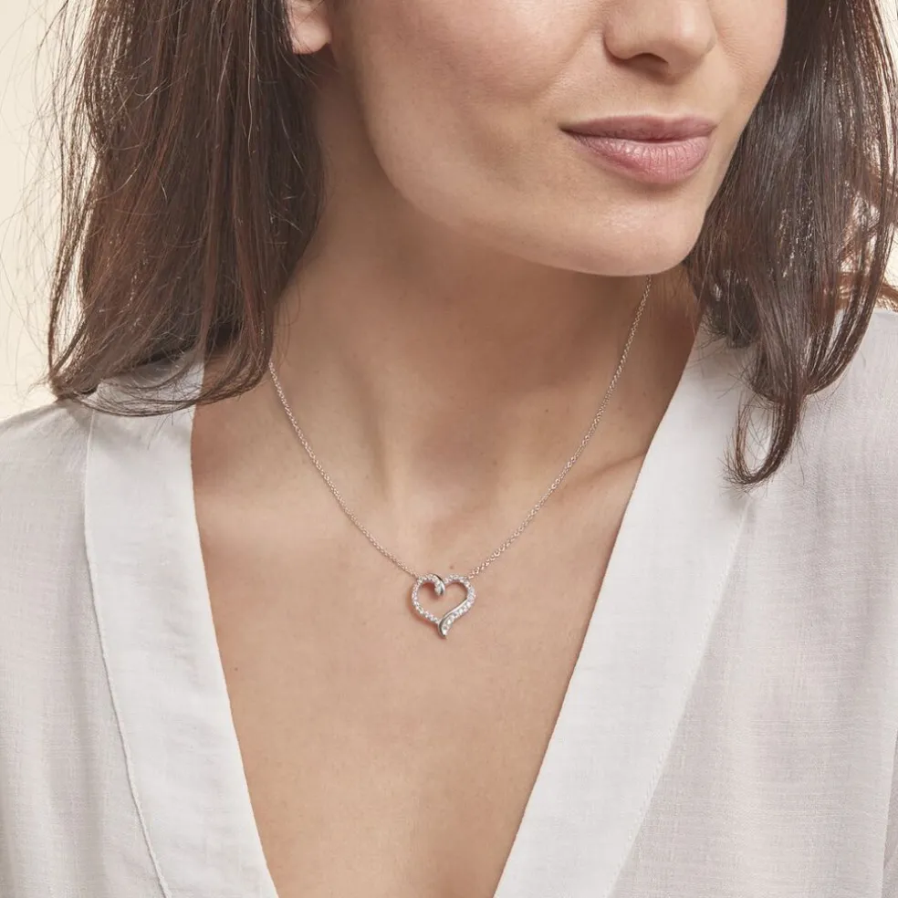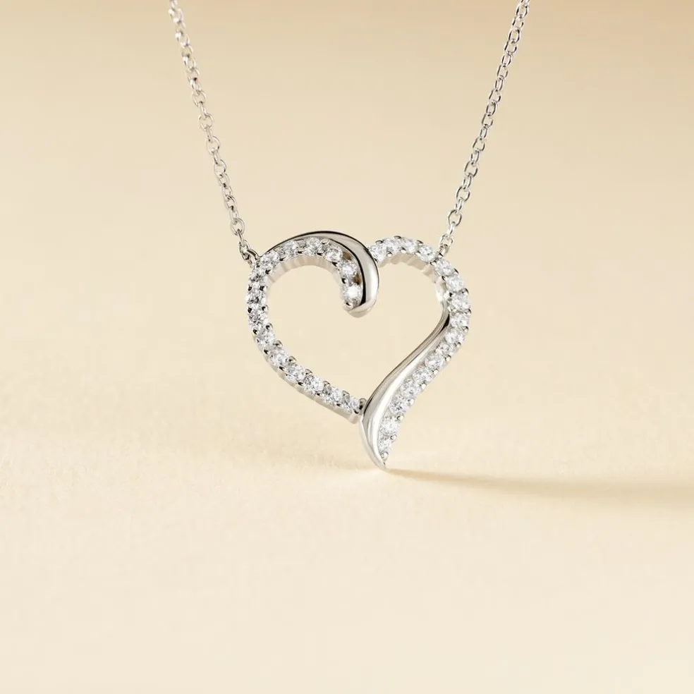 Collier Argent 925/1000 miliza Motif Forme Coeur Pave Oxydes De Zirconium Et Oxyde Central 45cm