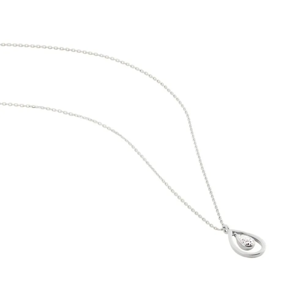 Collier Or Blanc 375/1000 Forme Double Goutte Pavage Diamants Maille Forçat 50cm