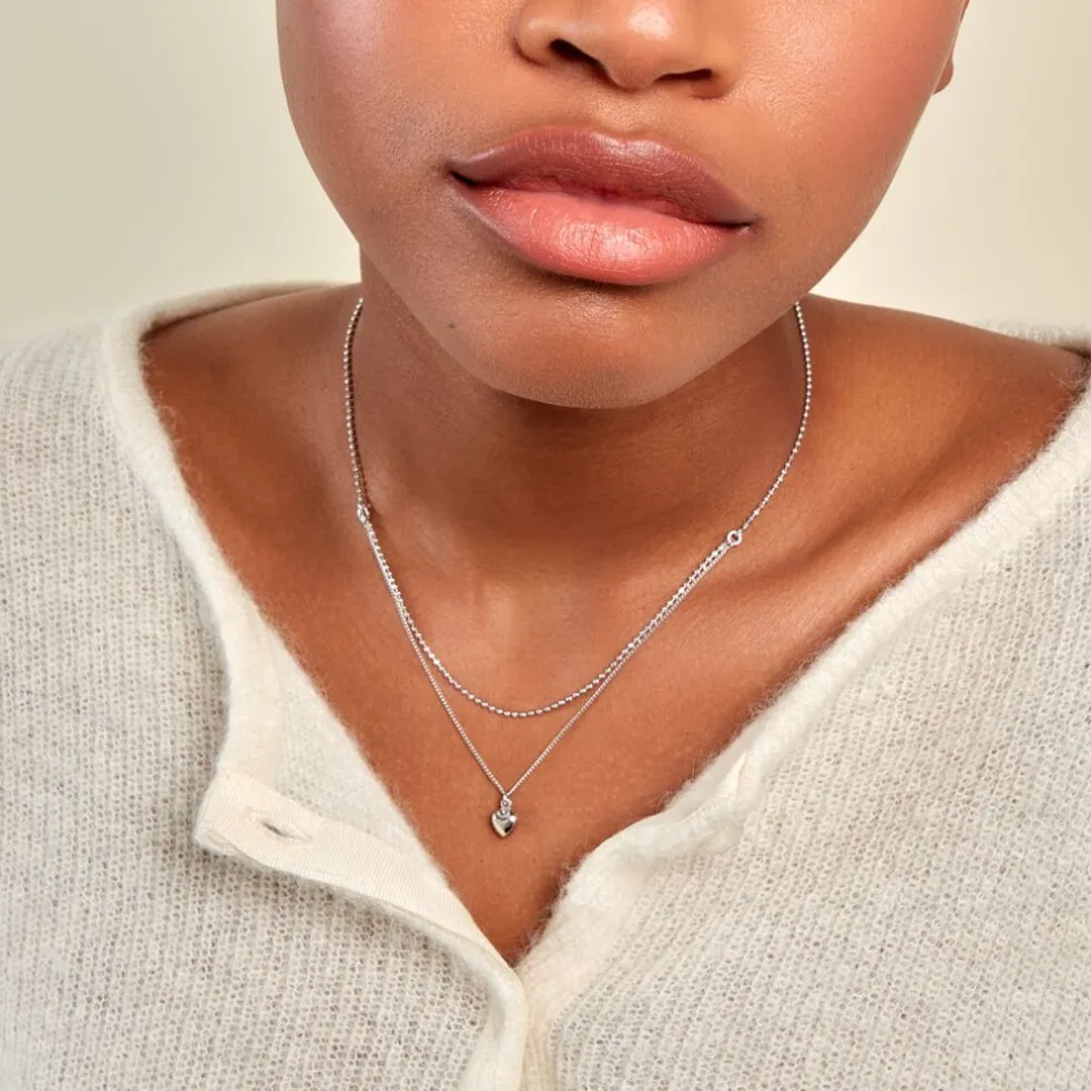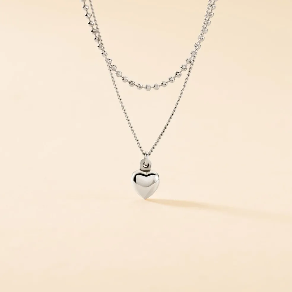 Collier Argent Blanc 925/1000 Coeur Double Maille Forçat Et Gourmette 36+3cm