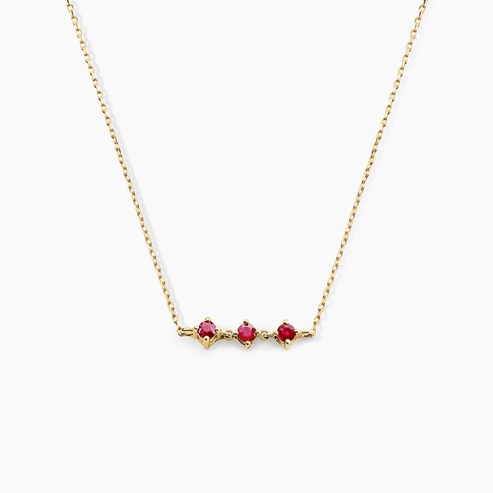 Collier Or Jaune 375/1000 Trilogie Rubis Ronds 0,13Cts Sertis Griffes Maille Forcat 42+3Cm