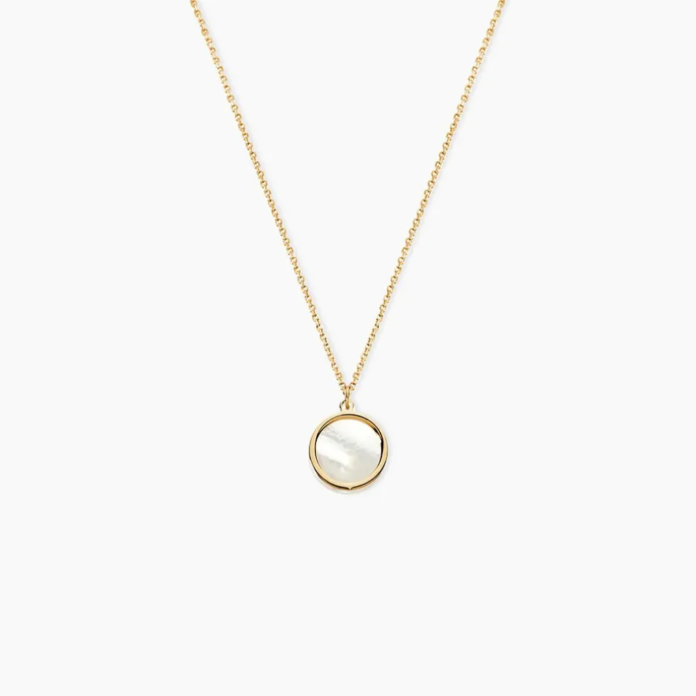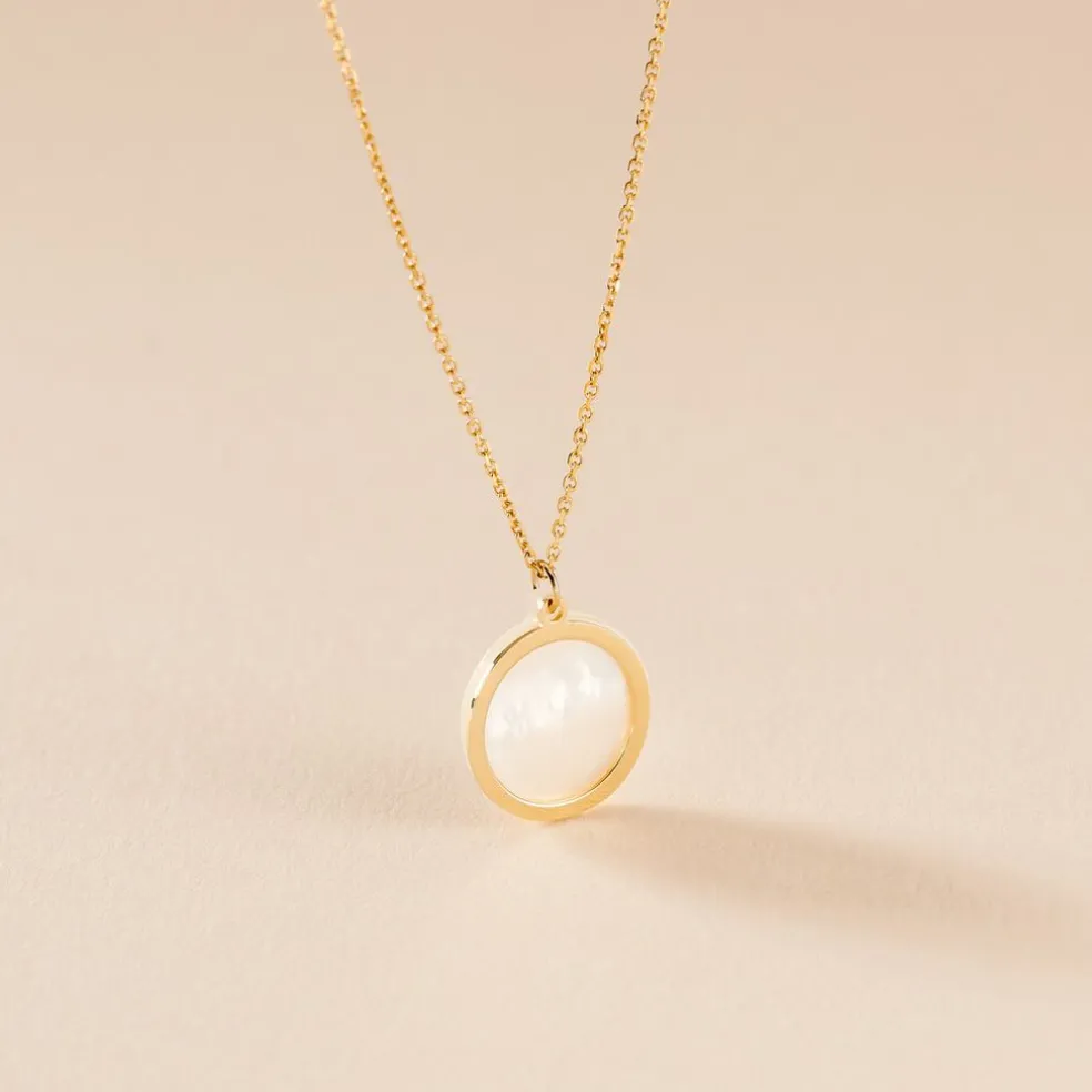 Collier Or Jaune 375/1000 Cercle Ajoure Et Nacre Maille Jaseron 40+2cm