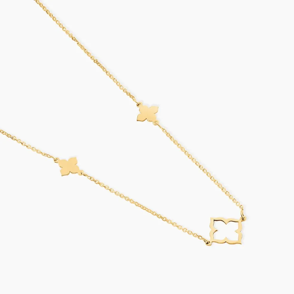 Collier Or Jaune 375/1000 Trefles Maille Jaseron 40+2Cm