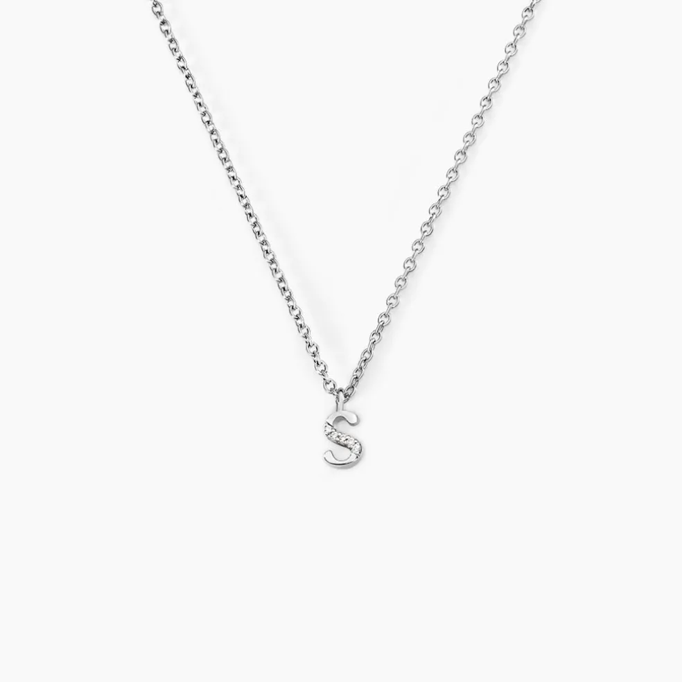 Collier Argent Blanc 925/1000 Lettre S Semi Pavage Oxydes De Zirconium Maille Forçat 38+3cm