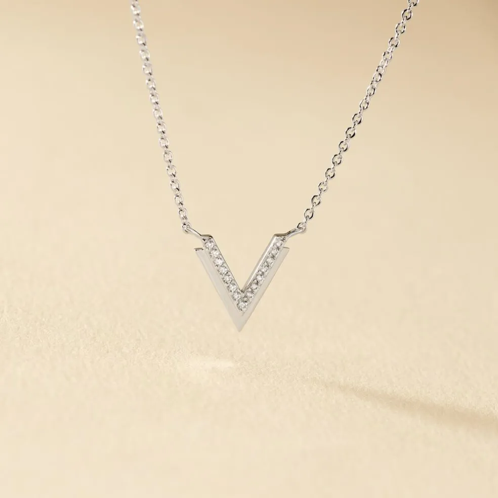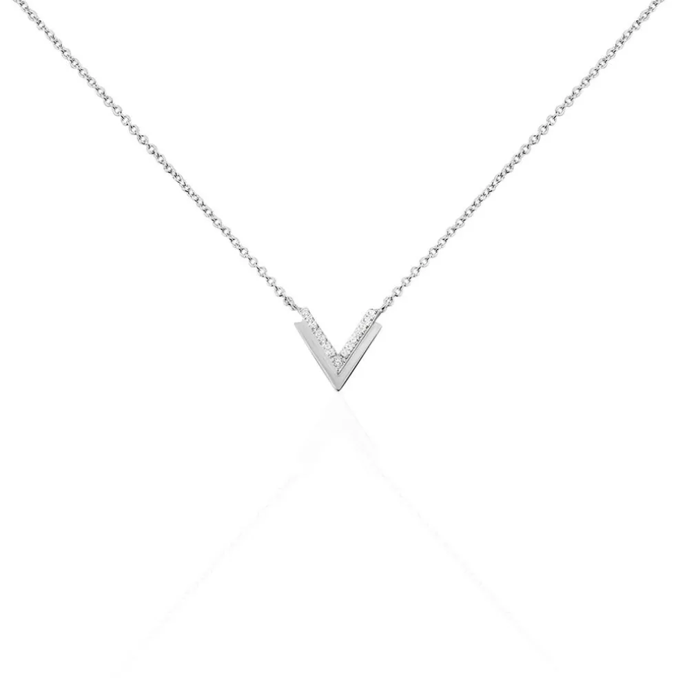 Collier Argent 925/1000 nollia Forme Double Ailes De Mouettes Semi Pavage Oxydes De Zirconium 45cm