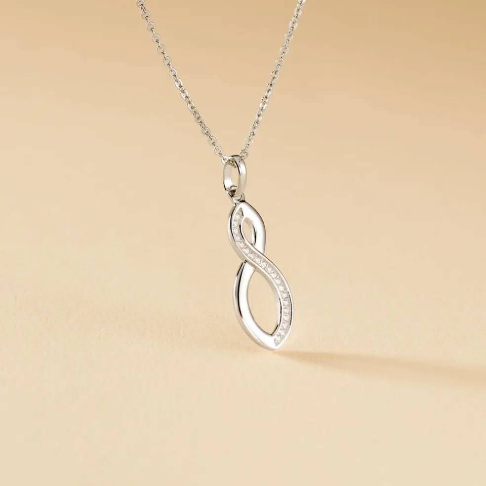Collier Argent 925/1000 odile Pendentif Motif Inifini Oxydes De Zirconium Chaine Maille Forcat 42cm