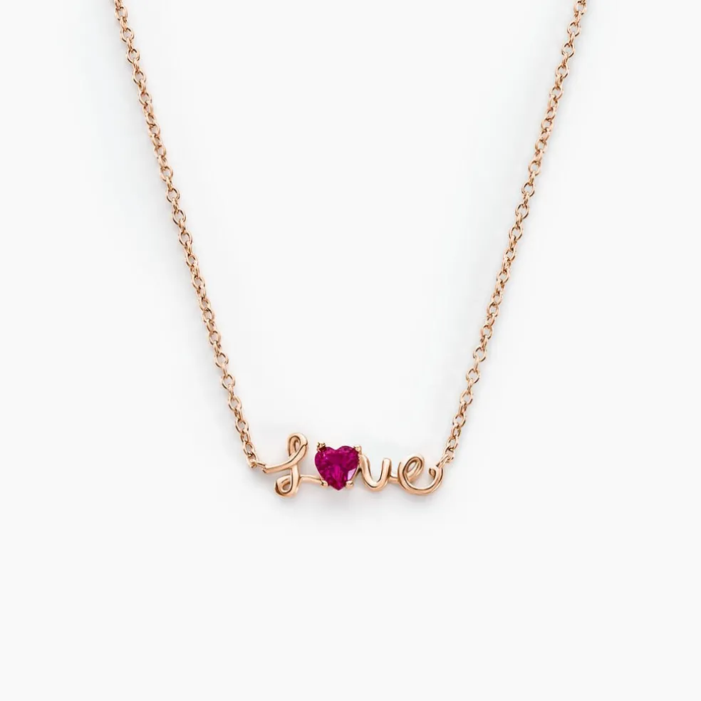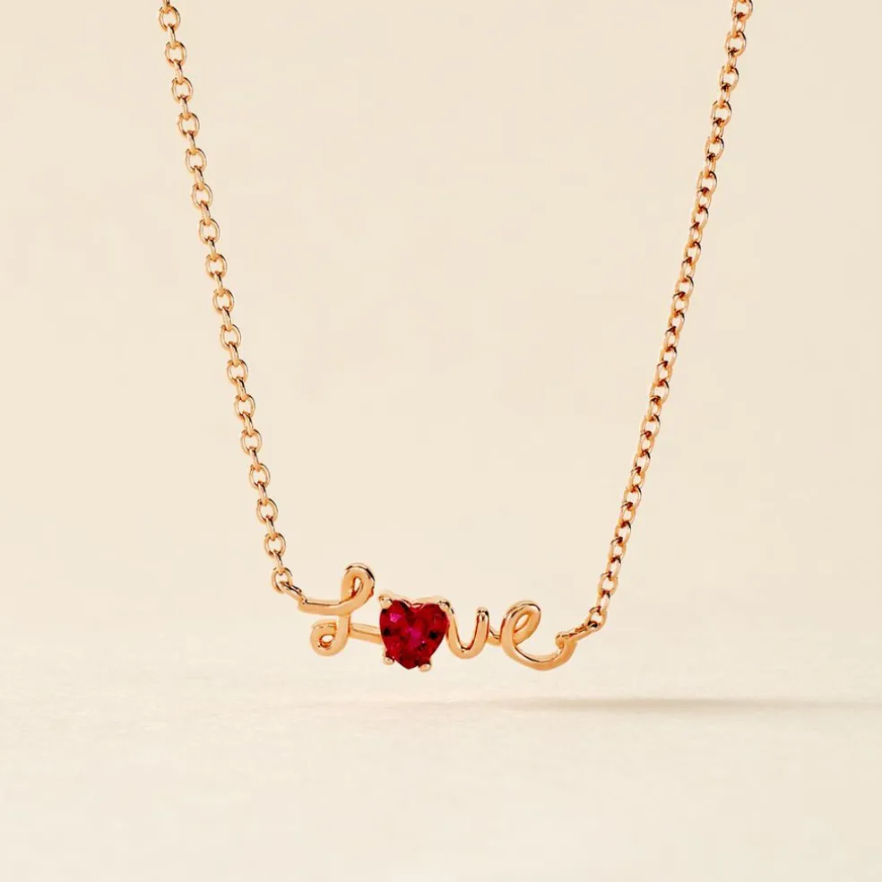 Collier Argent Rose 925/1000 C艙ur Message Love Oxyde De Zirconium Fuchsia Serti 4 Griffes Maille Forçat 42+3cm