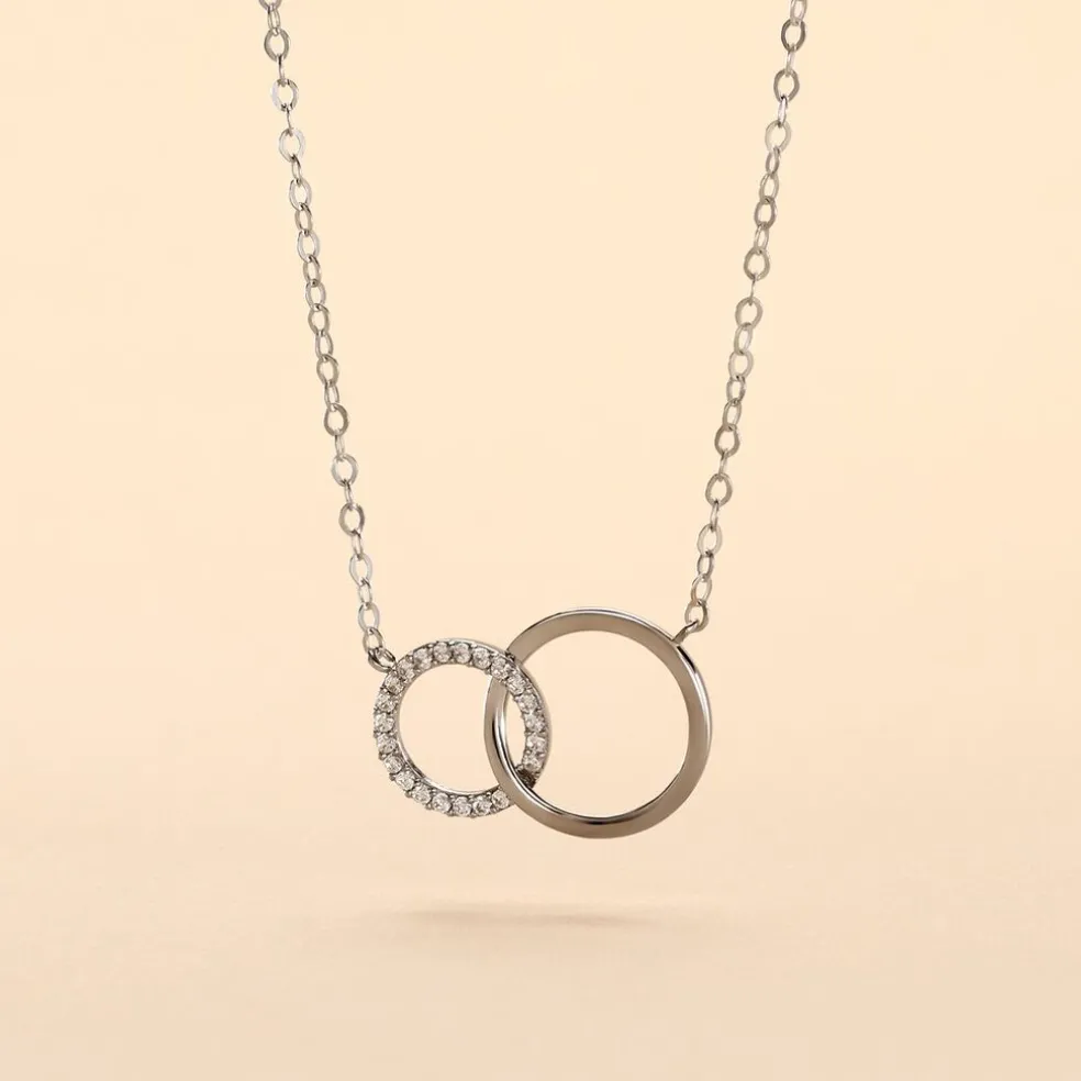Collier Or Blanc 375/1000 Double Cercles Pavage Oxydes De Zirconium 42cm