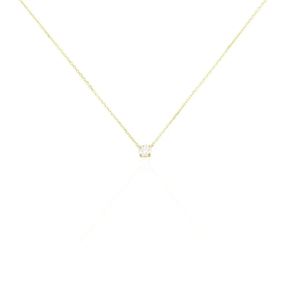 Collier Or Jaune 750/1000 Solitaire Diamant Synthetique 0.20cts Beliere Fixe Maille Forcat 40+5cm