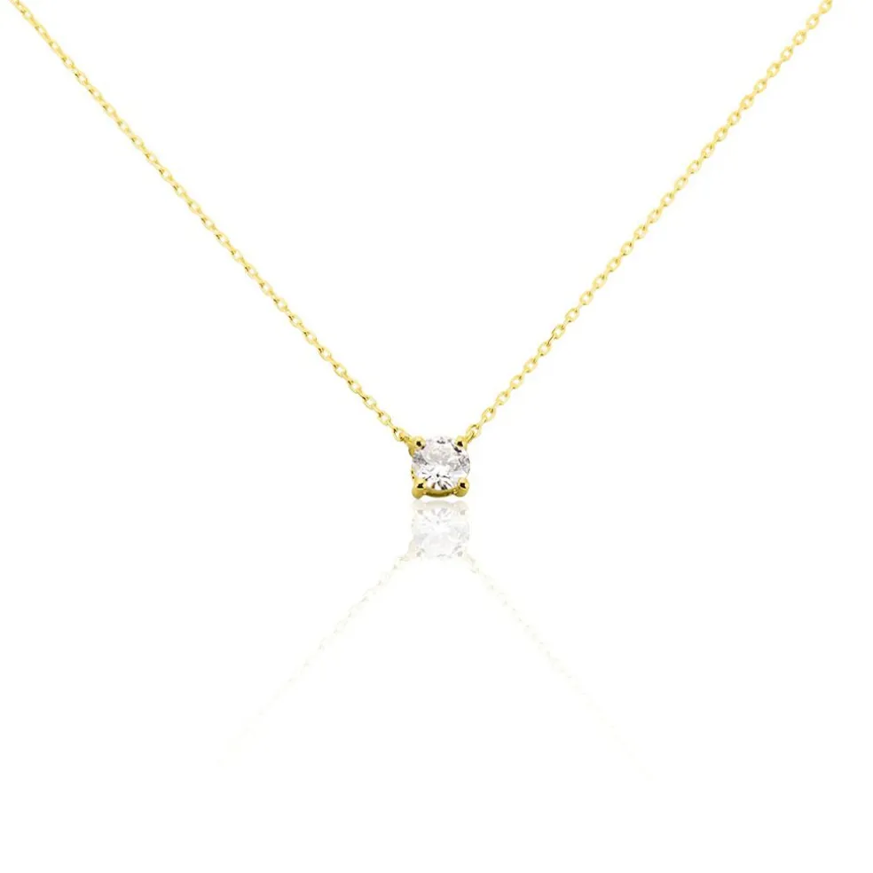 Collier Or Jaune 375/1000 Solitaire Diamant 0.34cts Serti 4 Griffes Maille Forçat 40+2cm
