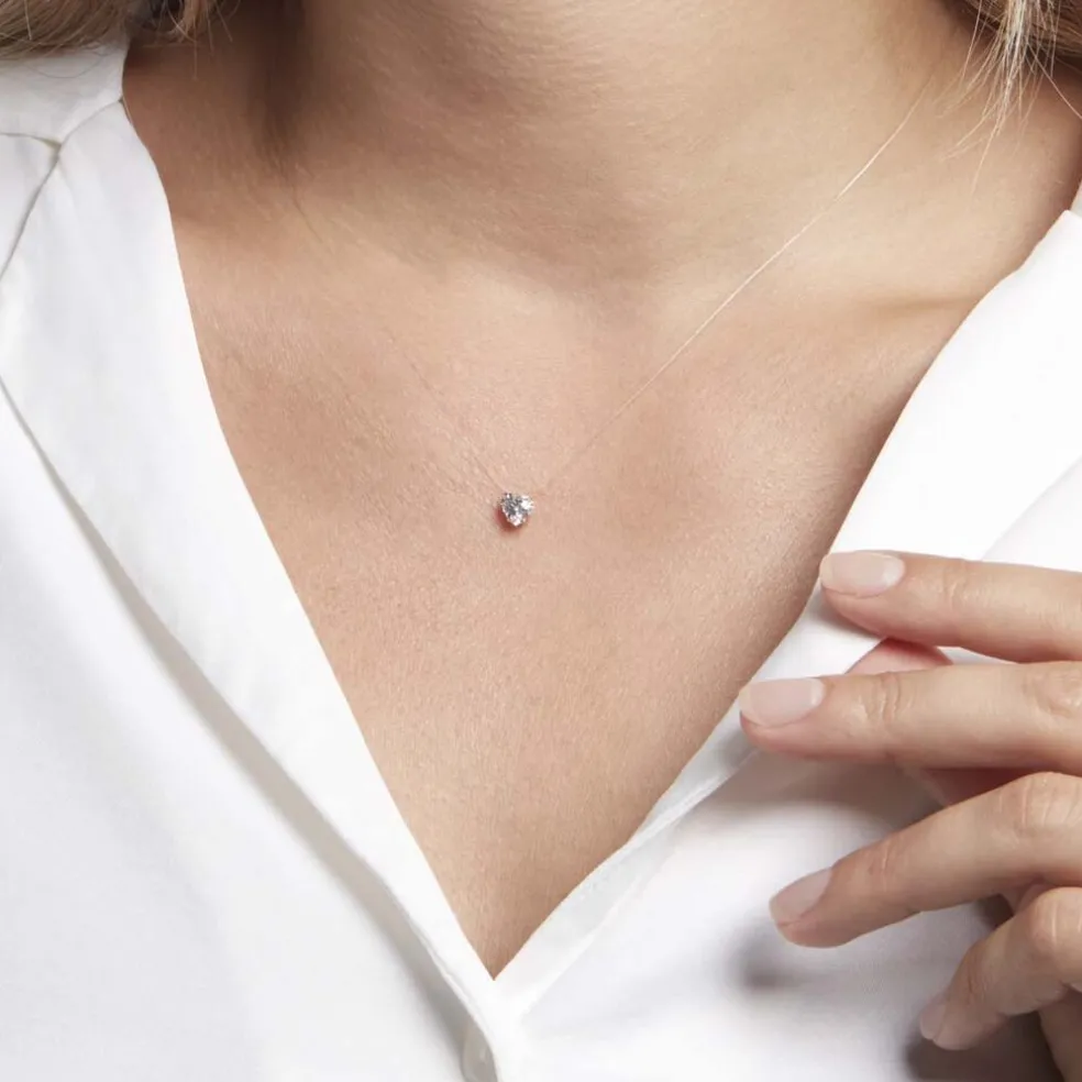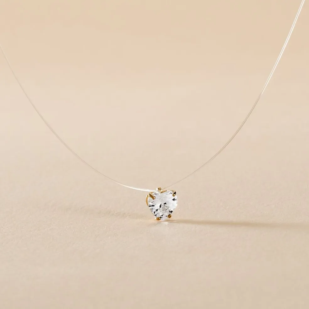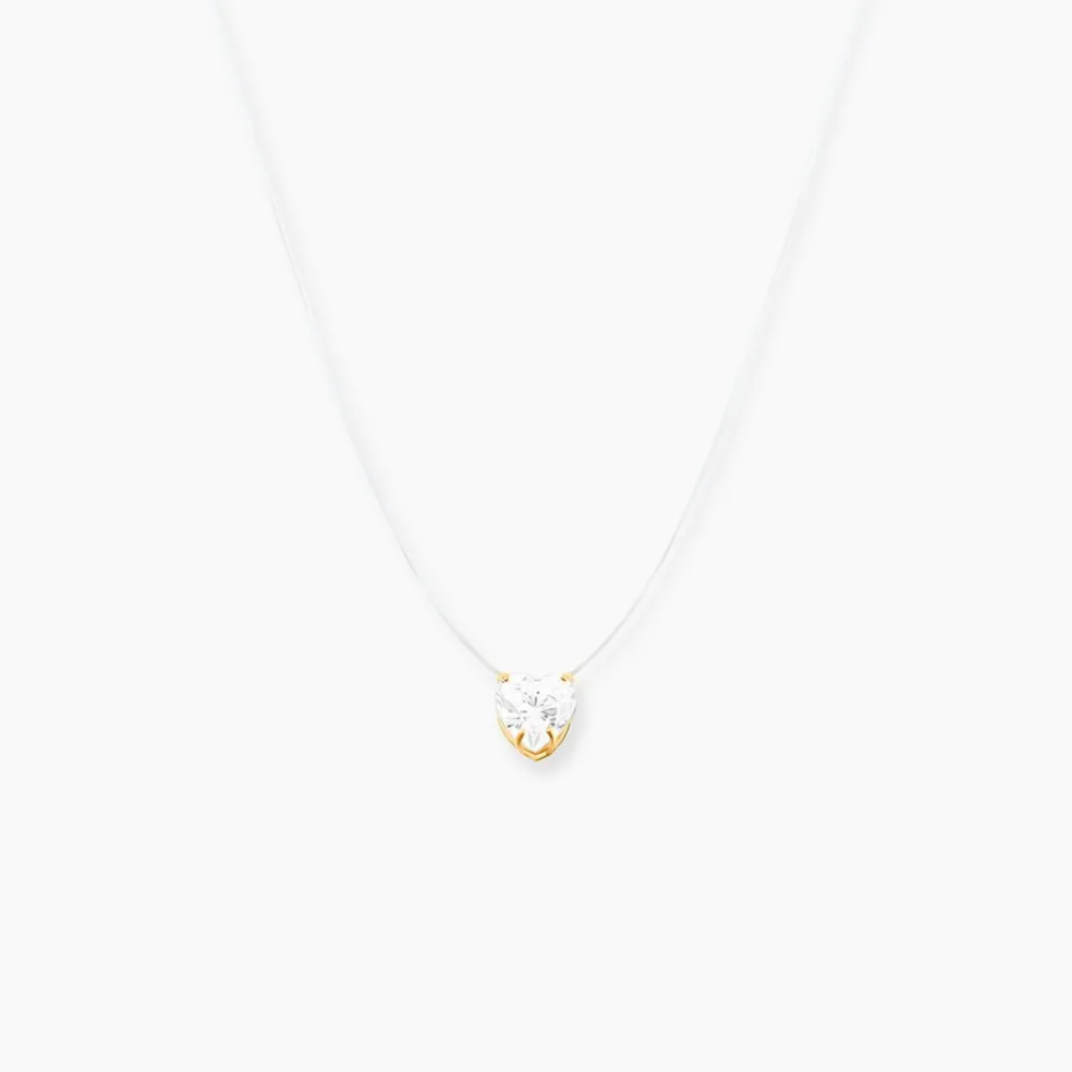 Collier Or Jaune 375/1000 Fil Nylon Oxyde De Zirconium C艙ur 4 Griffes 40 +2 Cm
