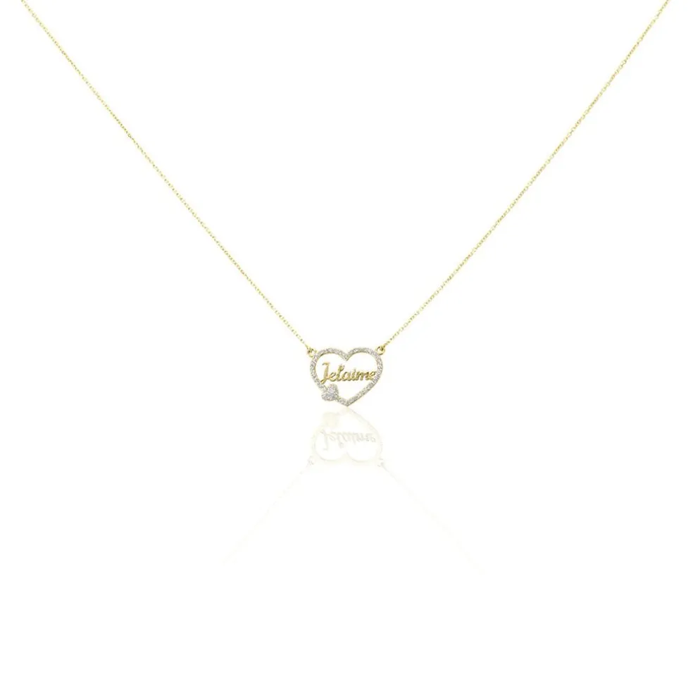 Collier Or Jaune 375/1000 Double C艙urs Glitter Argente Message Je T’aime Maille Jaseron 40+2cm