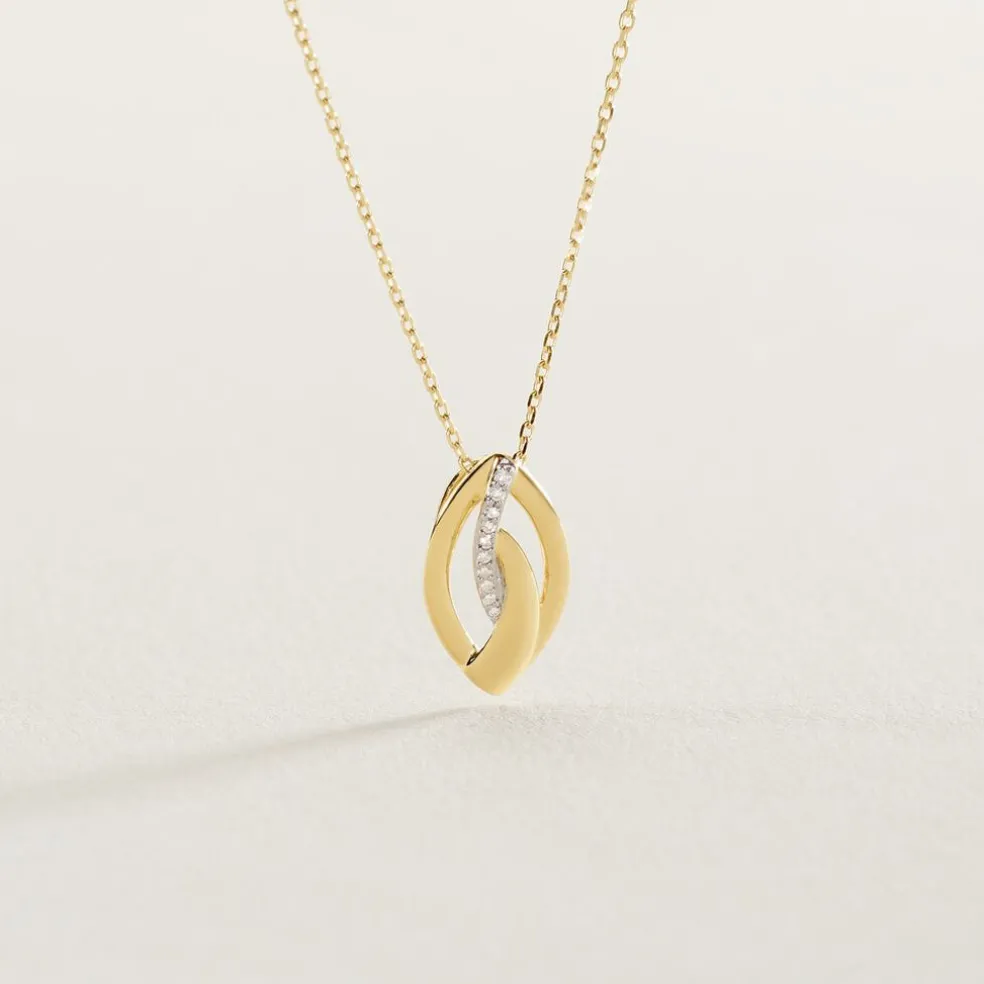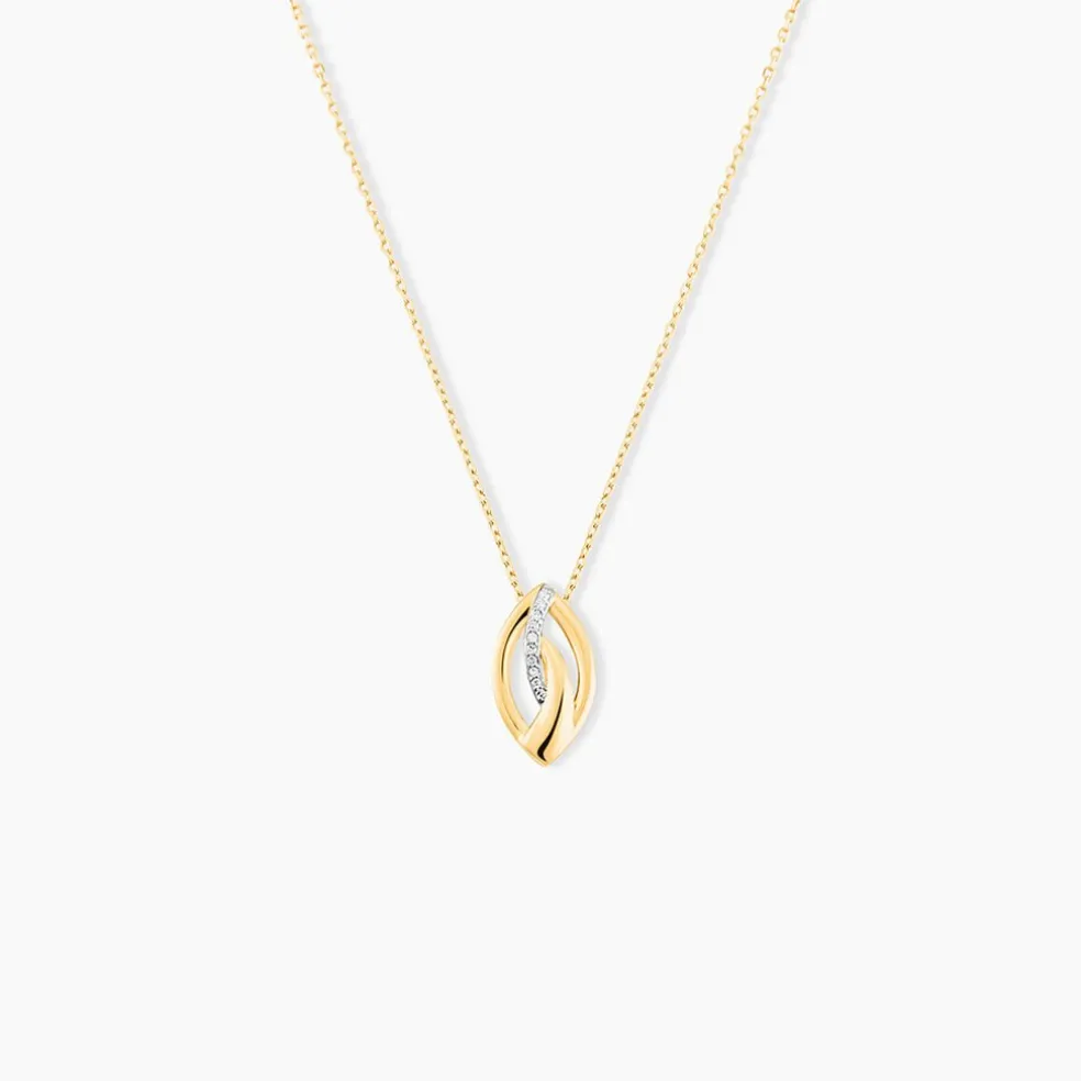 Collier Or Jaune 375/1000 Forme Gouttes Entrelacées Pavage Diamant Blanc Maille Forçat 40+2cm