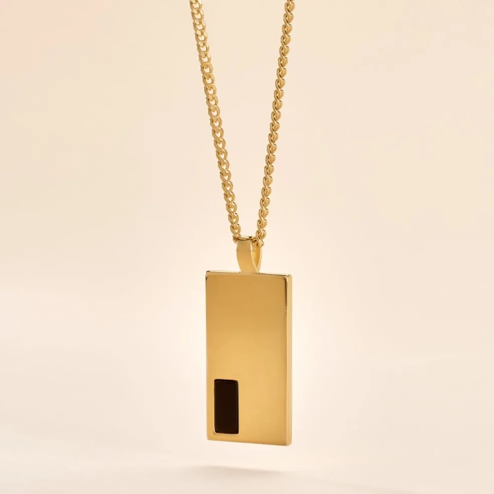 Collier Plaqué Or Jaune Plaque Rectangulaire Onyx Noire Maille Gourmette 60cm