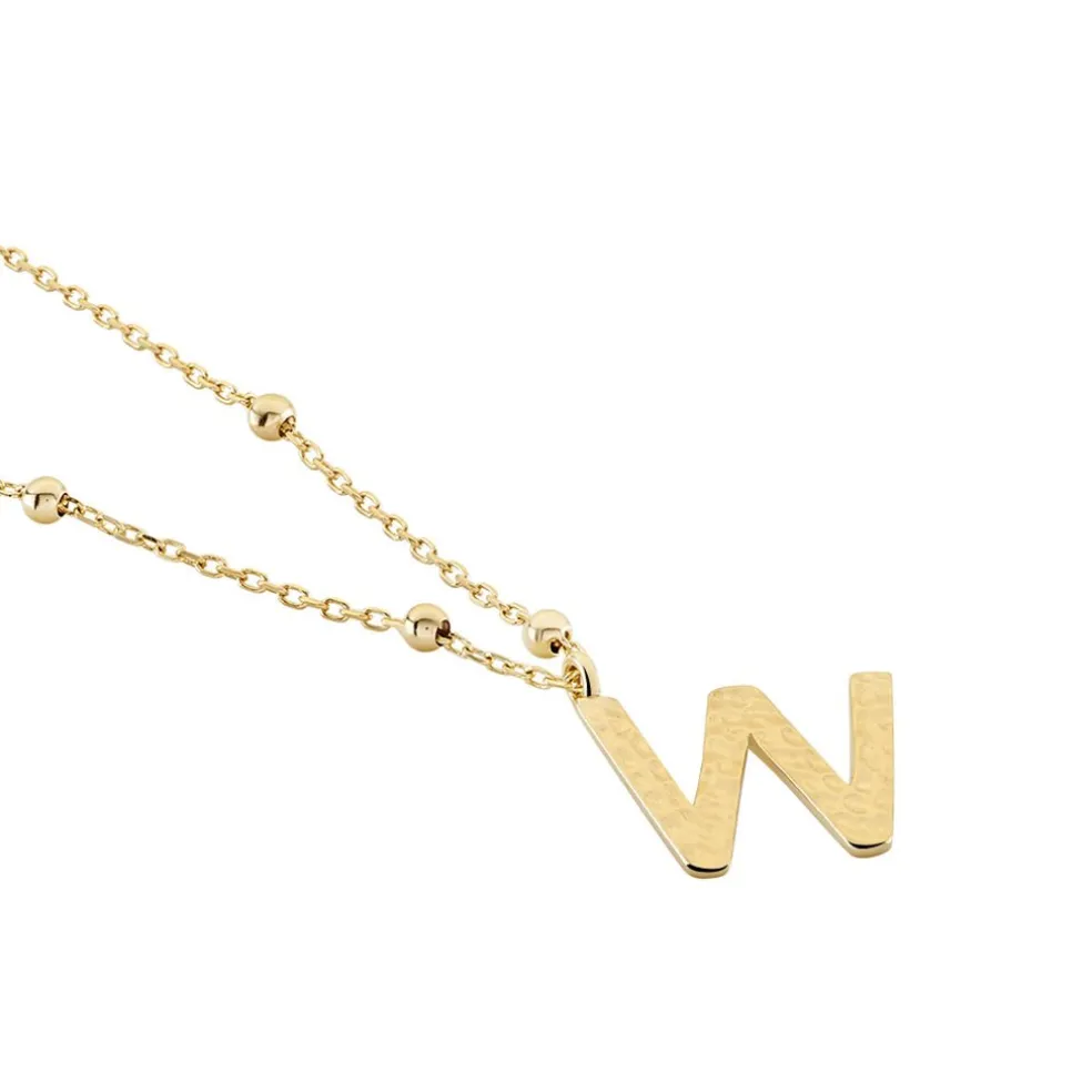 Collier Plaque Or Jaune Lettre W Martelee Et Petites Boules Chaine Maille Forcat Longueur 45cm