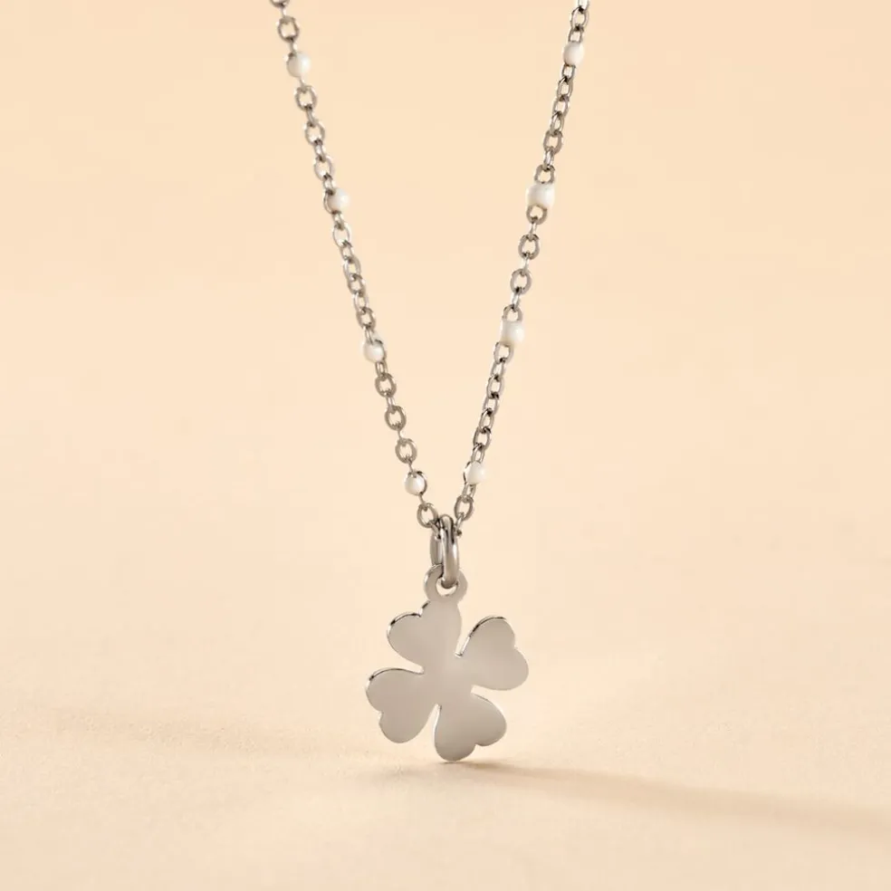 Collier Argent Blanc 925/1000 Trèfle Et Email Blanc Maille Forçat 38cm
