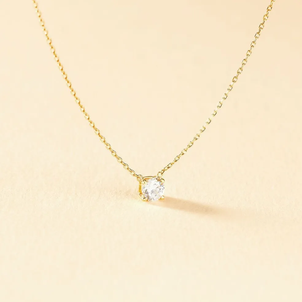 Collier Or Jaune 375/1000 Maille Forçat Oxyde De Zirconium 4mm 42cm