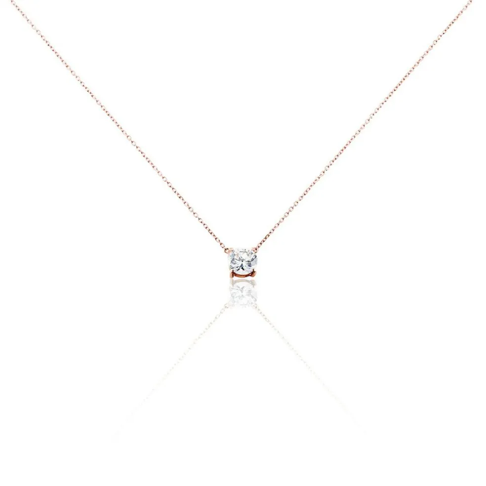 Collier Or Rose 375/1000 Maille Forçat Oxyde De Zirconium 4mm Pm 42cm