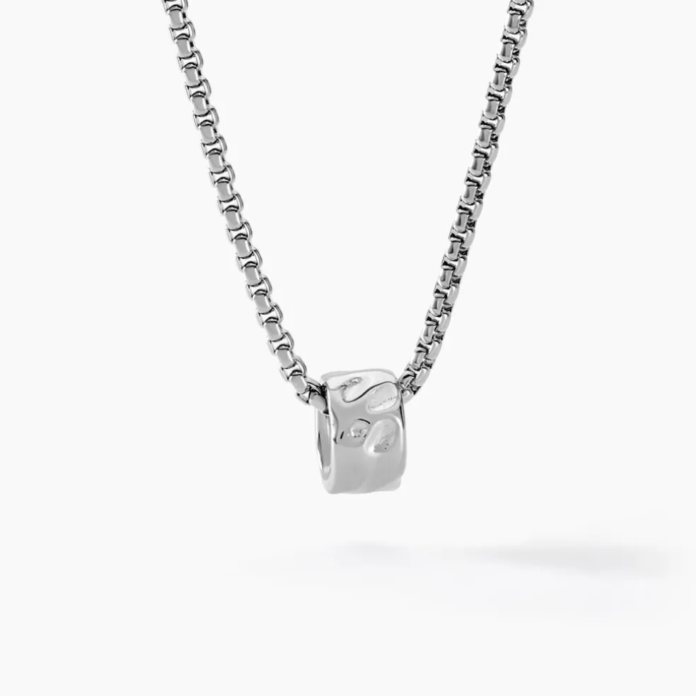 Collier Acier Inoxydable Blanc Anneau Effet Froisse Maille Vénitienne Largeur 2mm 55cm