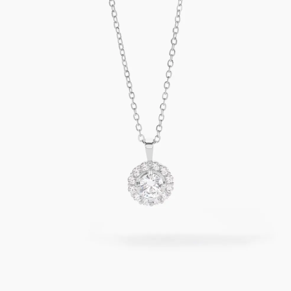 Collier Argent 925/1000 princess Oxyde De Zirconium Central Et Entourage 42cm