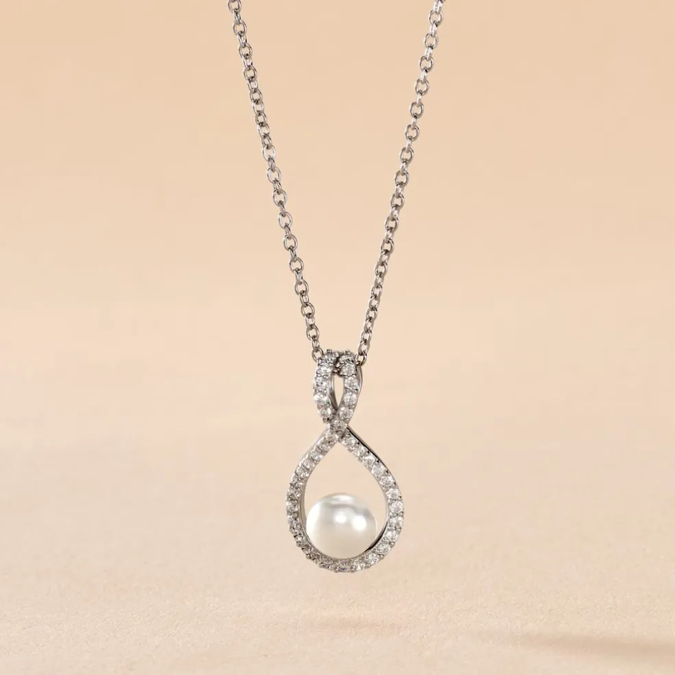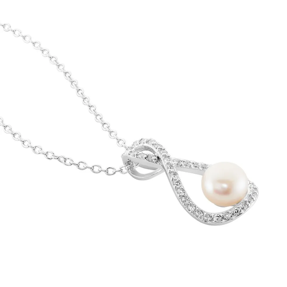 Collier Argent Blanc 925/1000 Sonia Perle De Culture 6/6.5mm Vrille Oxydes De Zirconium 46cm