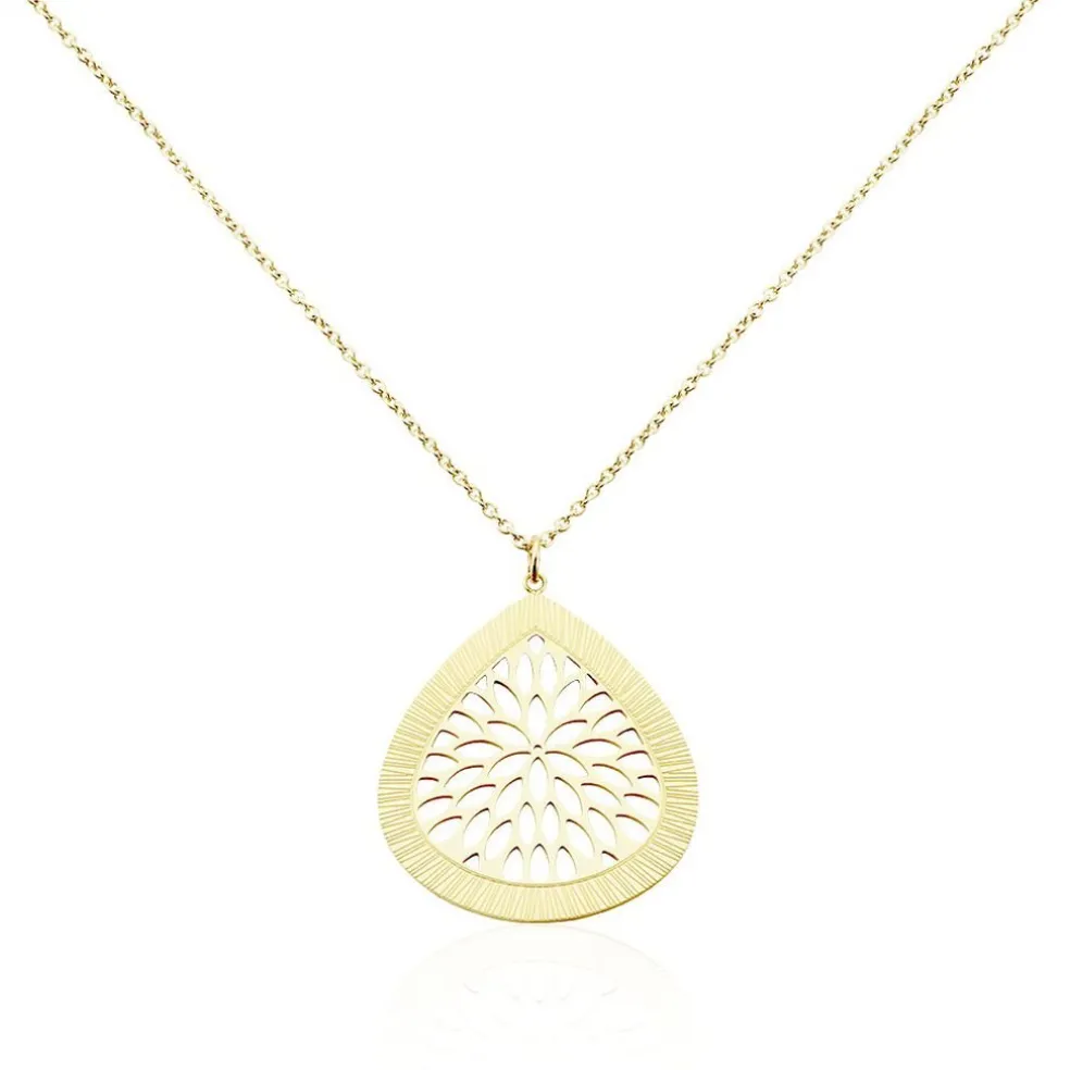 Collier Sautoir Acier Doré Goutte Feuillage Maille Forçat 65cm