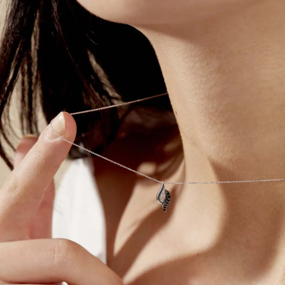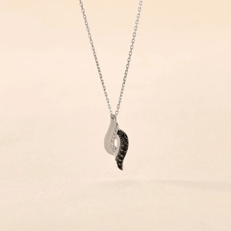 Collier Or Blanc 375/1000 Diamants Et Diamants Noirs 42cm