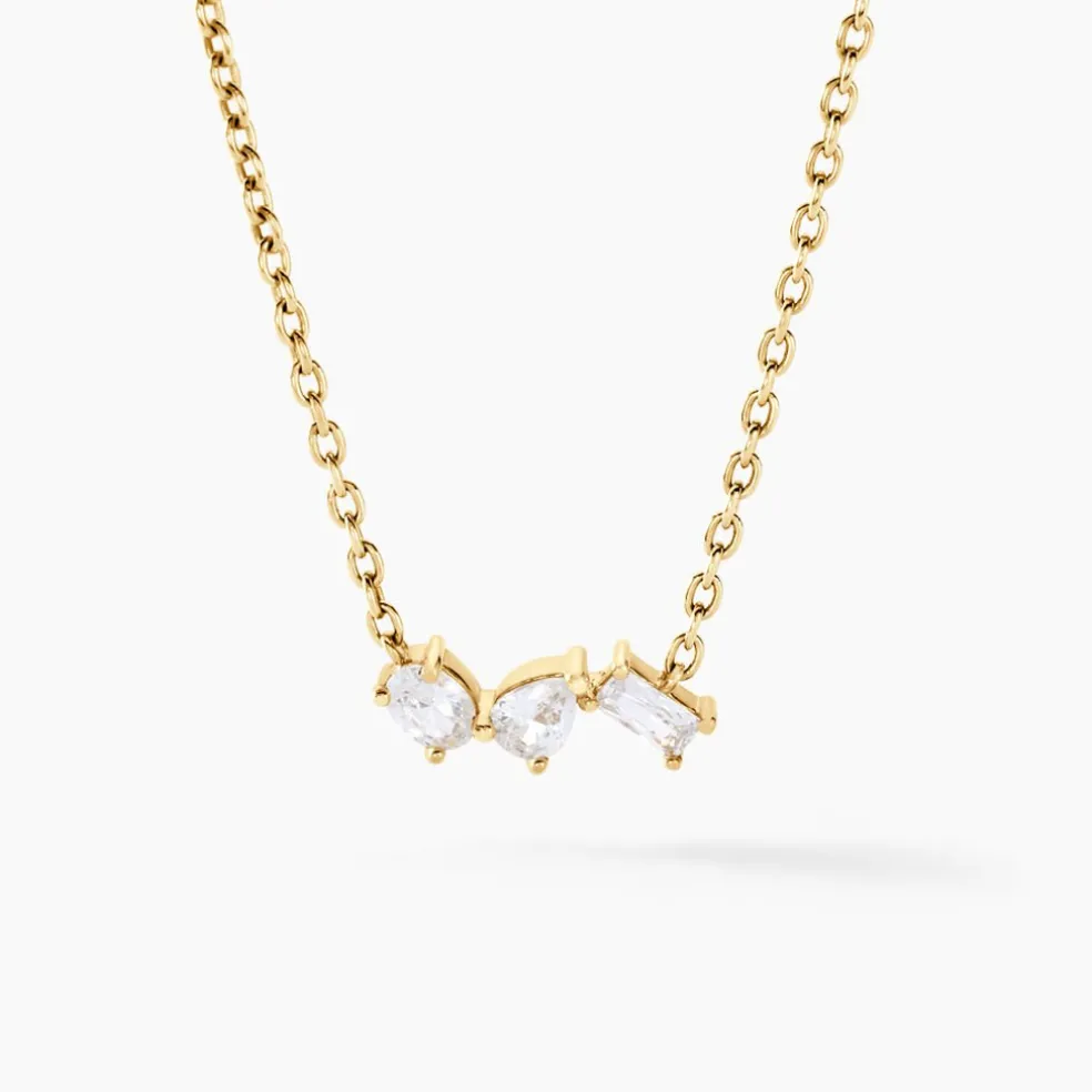 Collier Or Jaune 375/1000 Multipierres Oxyde Zirconium Ovale Poire Et Emeraude Serti 4 Griffes Maille 40+2cm