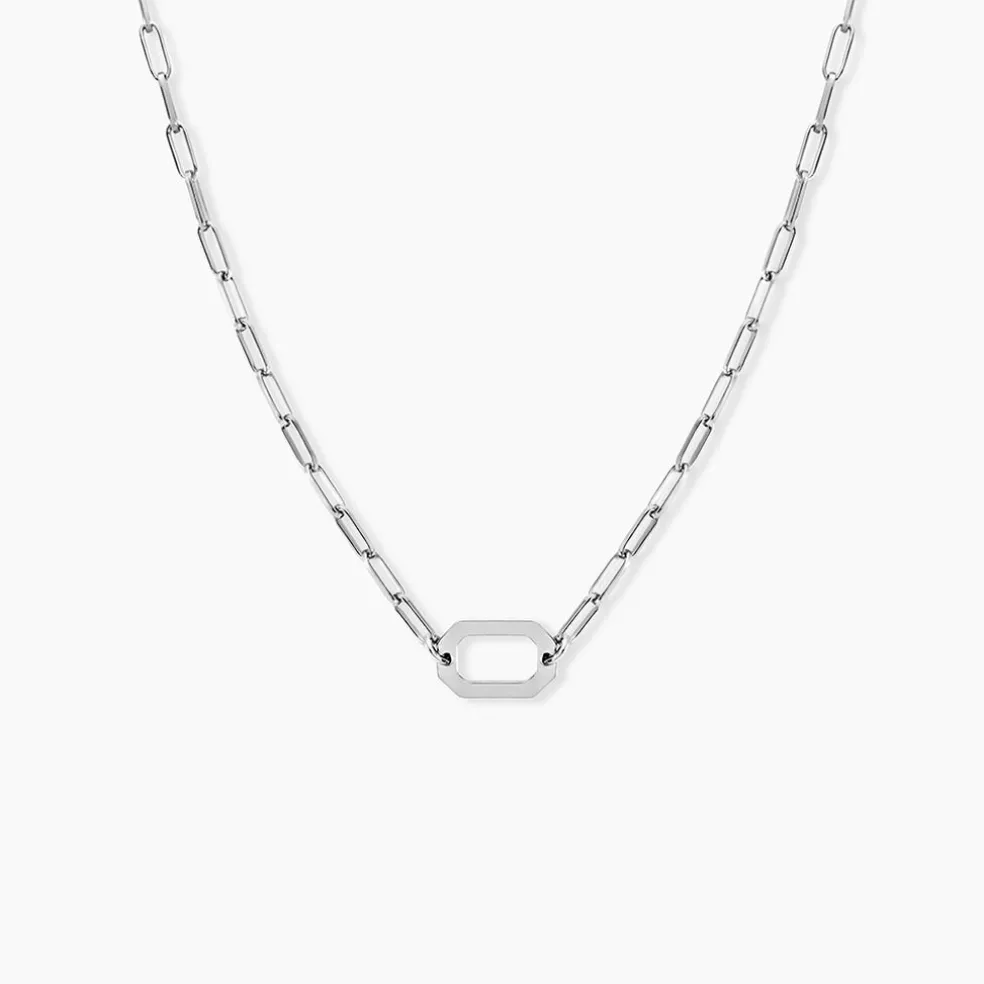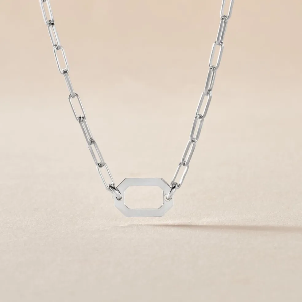 Collier Argent Blanc 925/1000 Maillon Hexagonal Maille Cheval Largeur 2mm 45cm