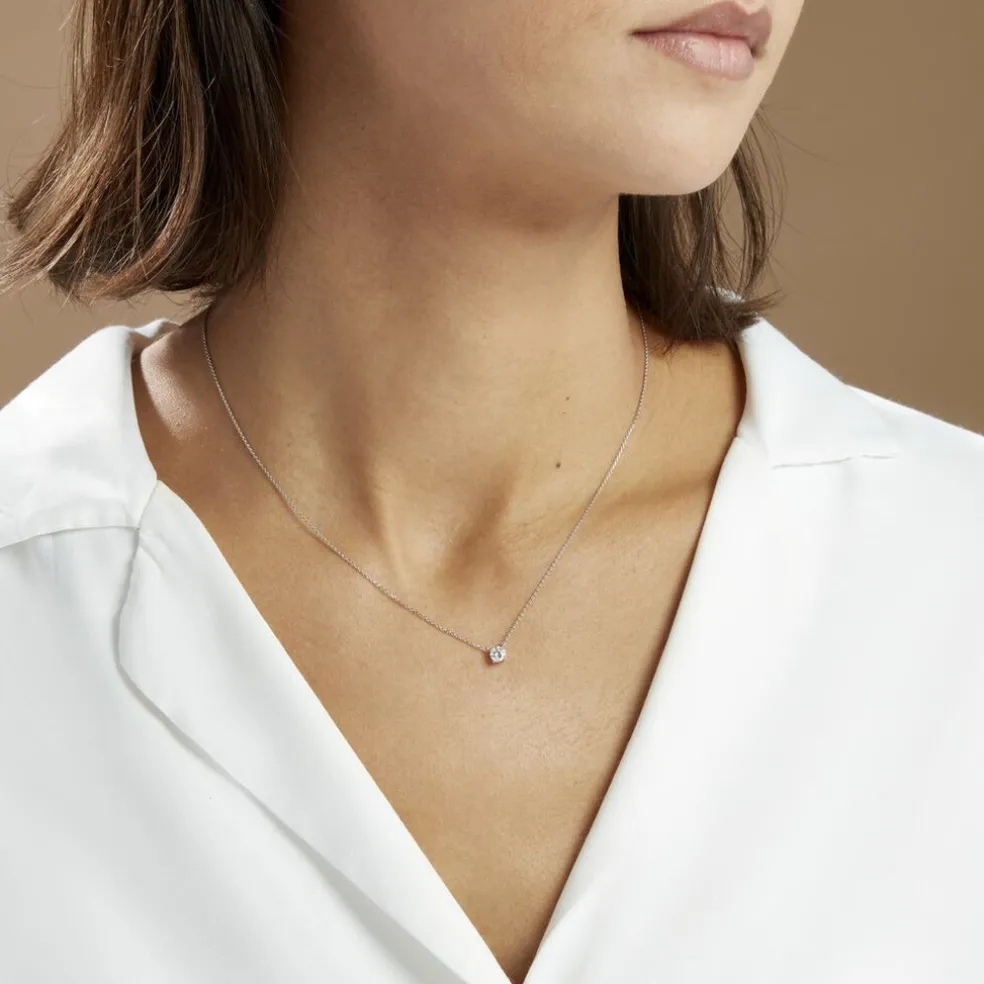 Collier Solitaire Platine 950/1000 Blanc Diamant 0.30cts Serti 4 Griffes Maille Forçat 45cm