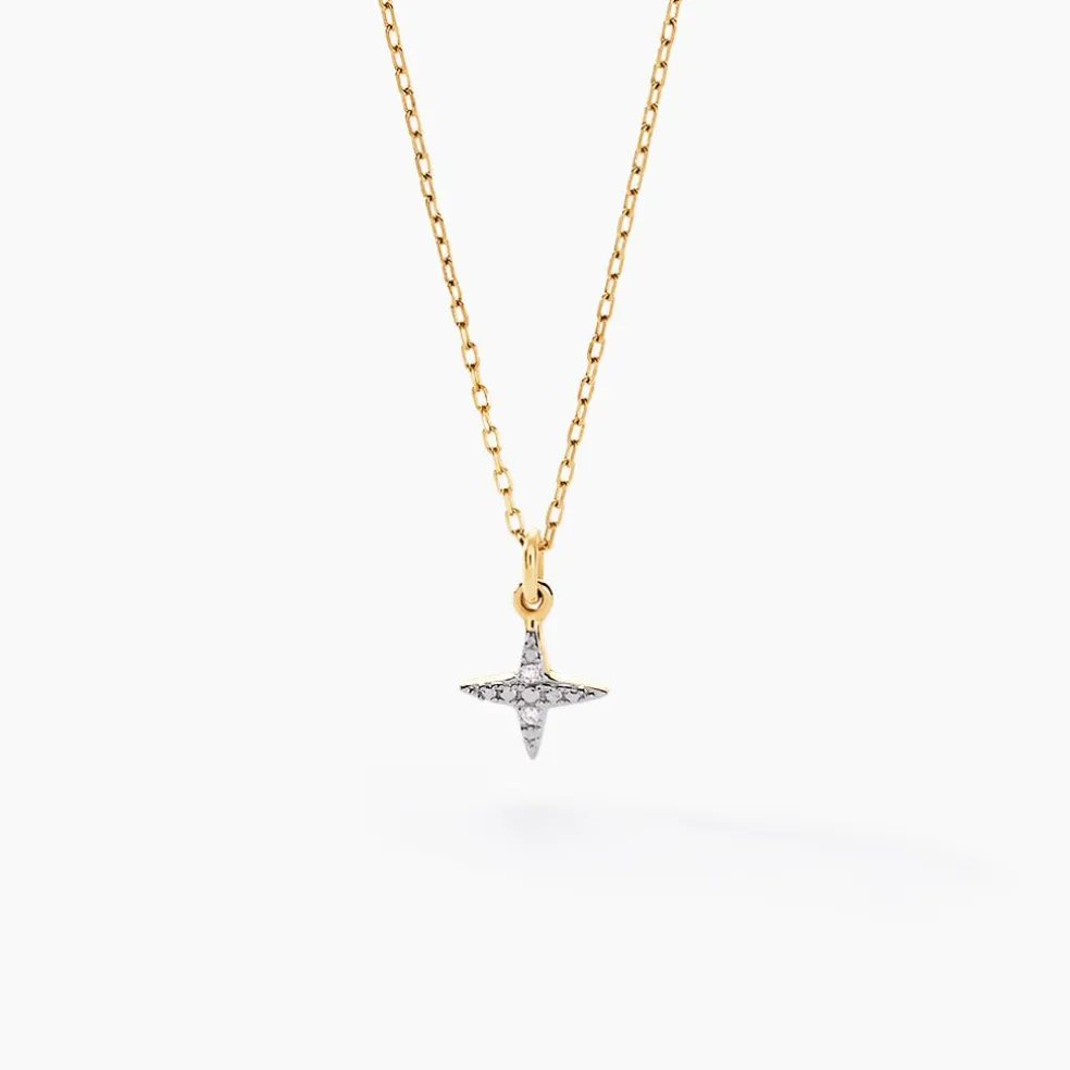 Collier Or Jaune 375/1000 Etoile Diamant 0.007cts Illusion Maille Forcat 40+2cm