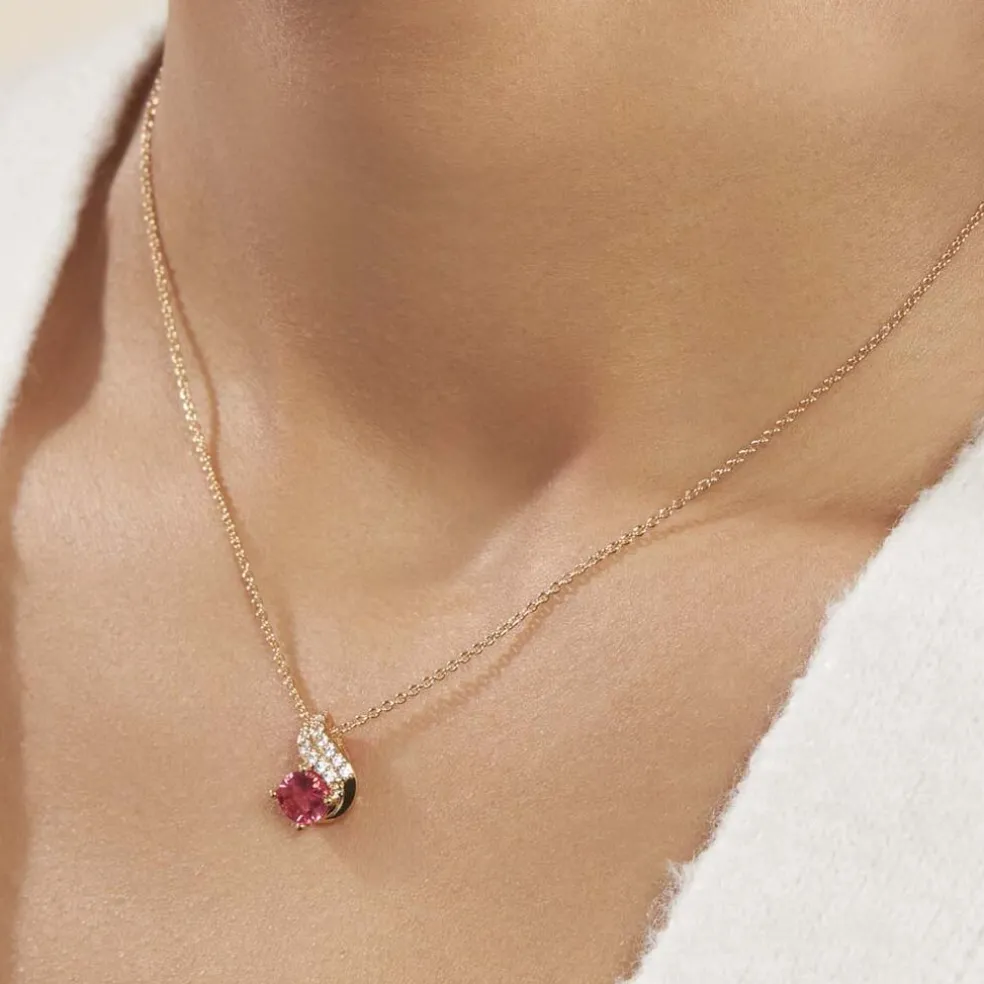 Collier Plaqué Or Jaune Vague Pavage Oxydes De Zirconium Pierre Rouge 44cm