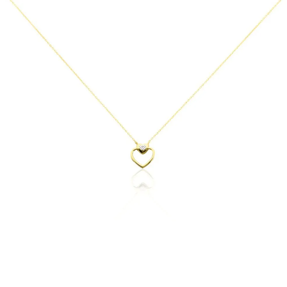 Collier Or Jaune 375/1000 Forme C艙ur Maille Forçat Pavage Diamants 42cm