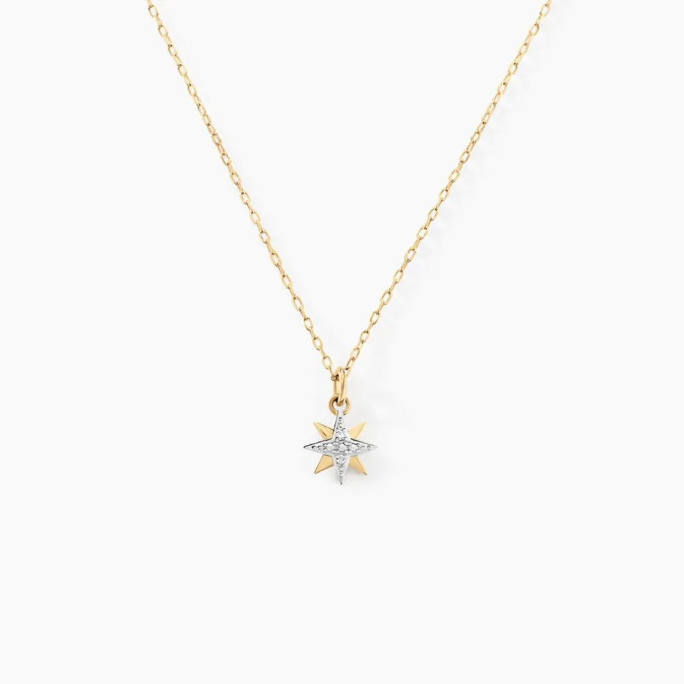 Collier Or Jaune 375/1000 Etoile Diamant 0.007cts Illusion Maille Forcat 40+2cm