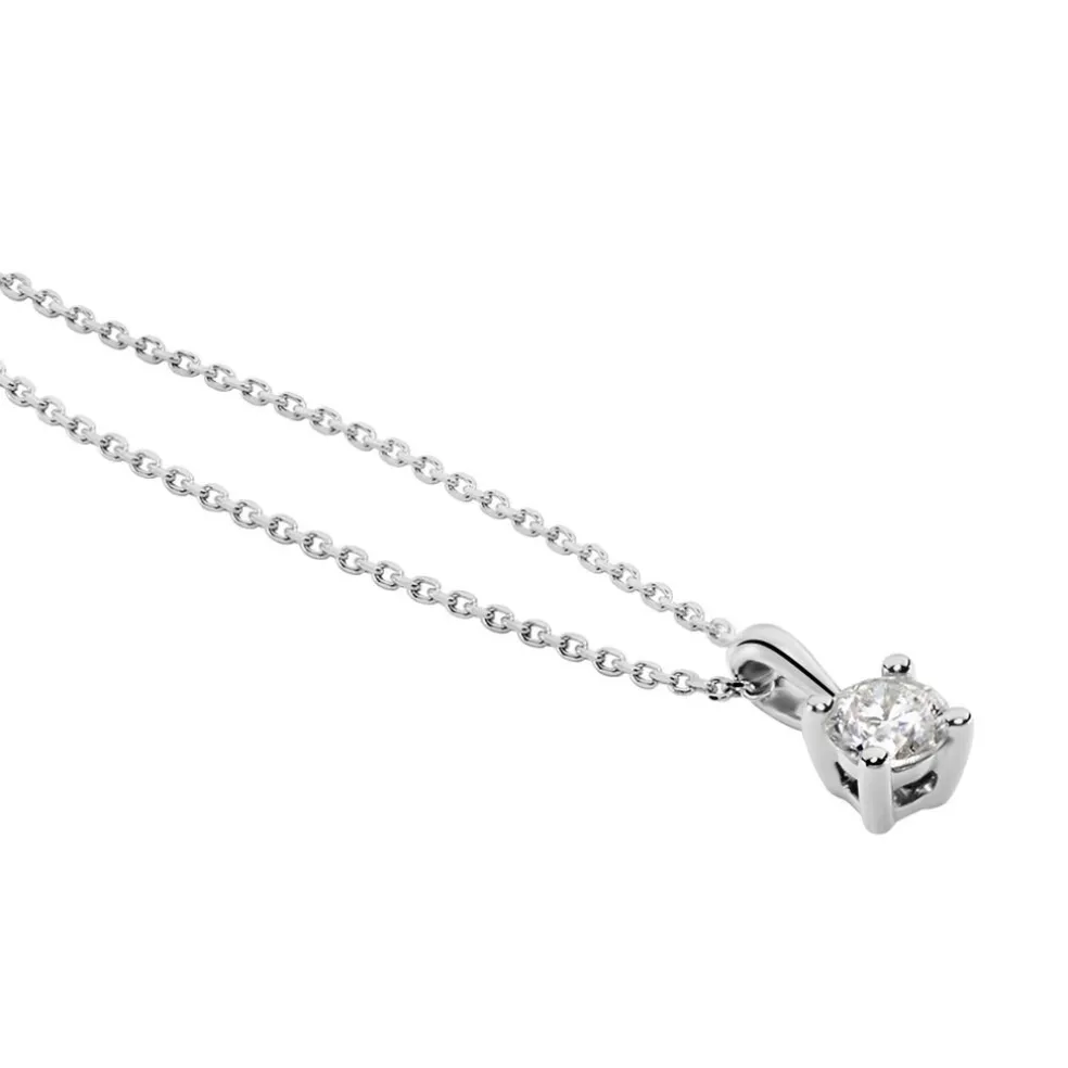 Collier Platine 950/1000 Blanc Maille Forçat Diamant 0.25cts Serti 4 Griffes 42cm