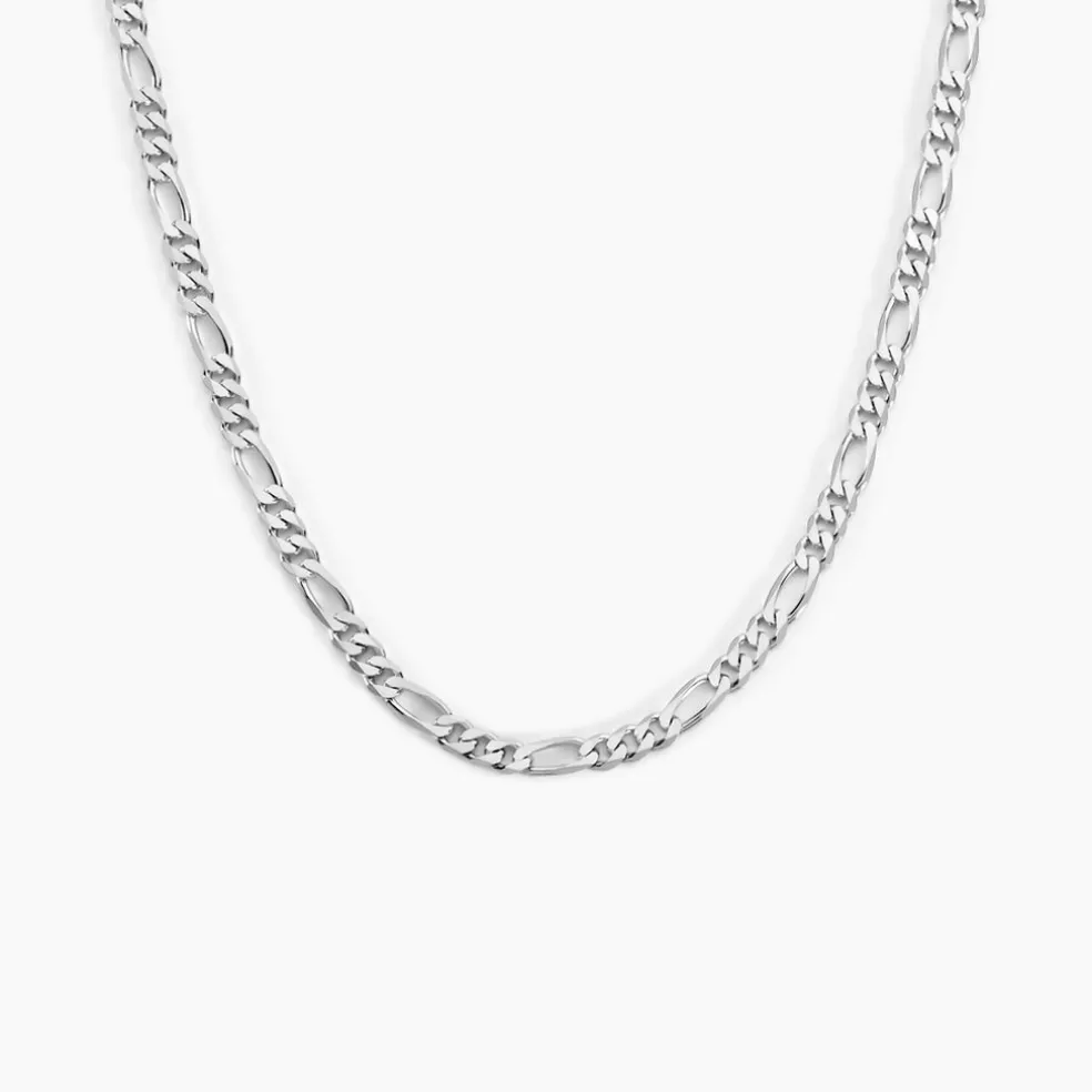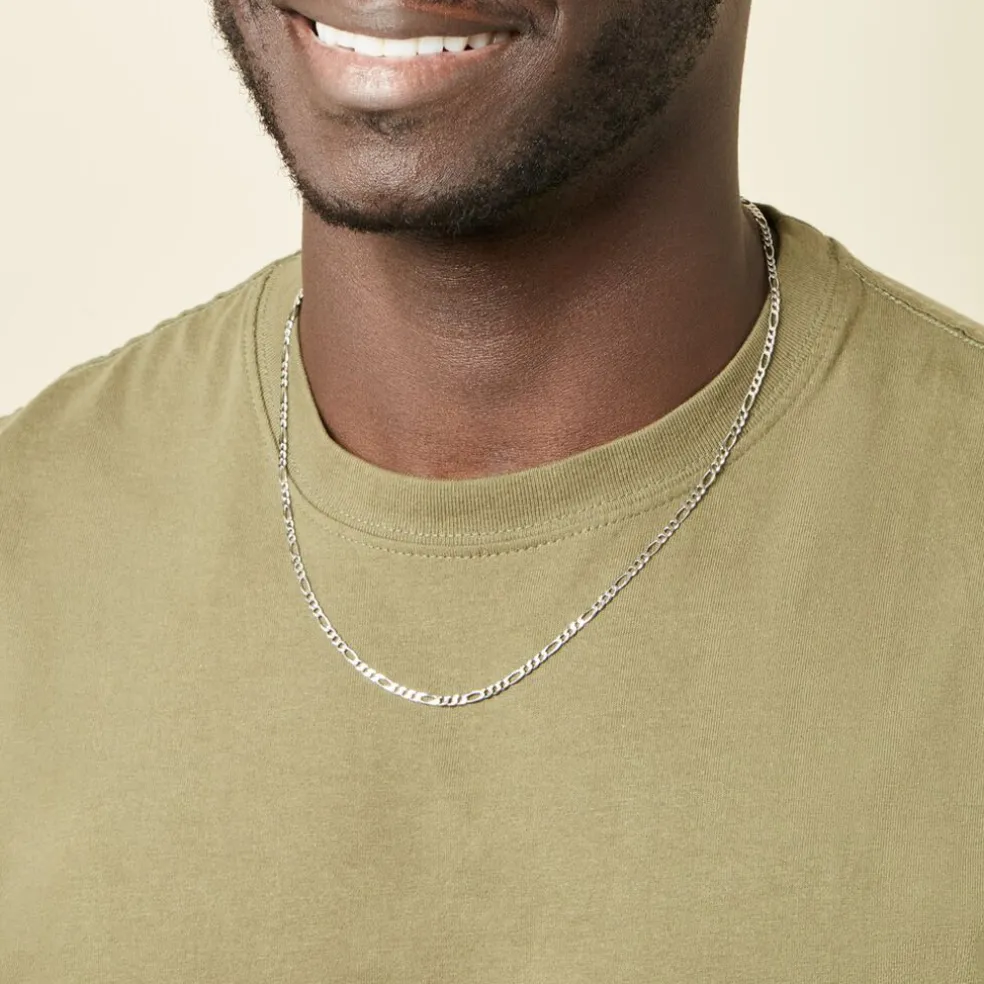 Collier Argent Blanc 925/1000 Maille Alternee 1/3 3mm 55cm