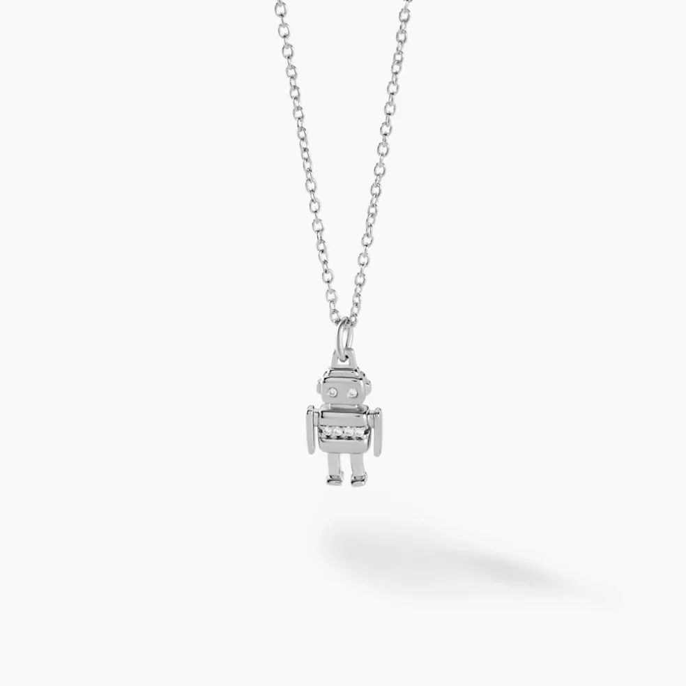 Collier Court Argent Blanc 925/1000 Robot Oxydes De Zirconium Maille Forçat 35+3cm