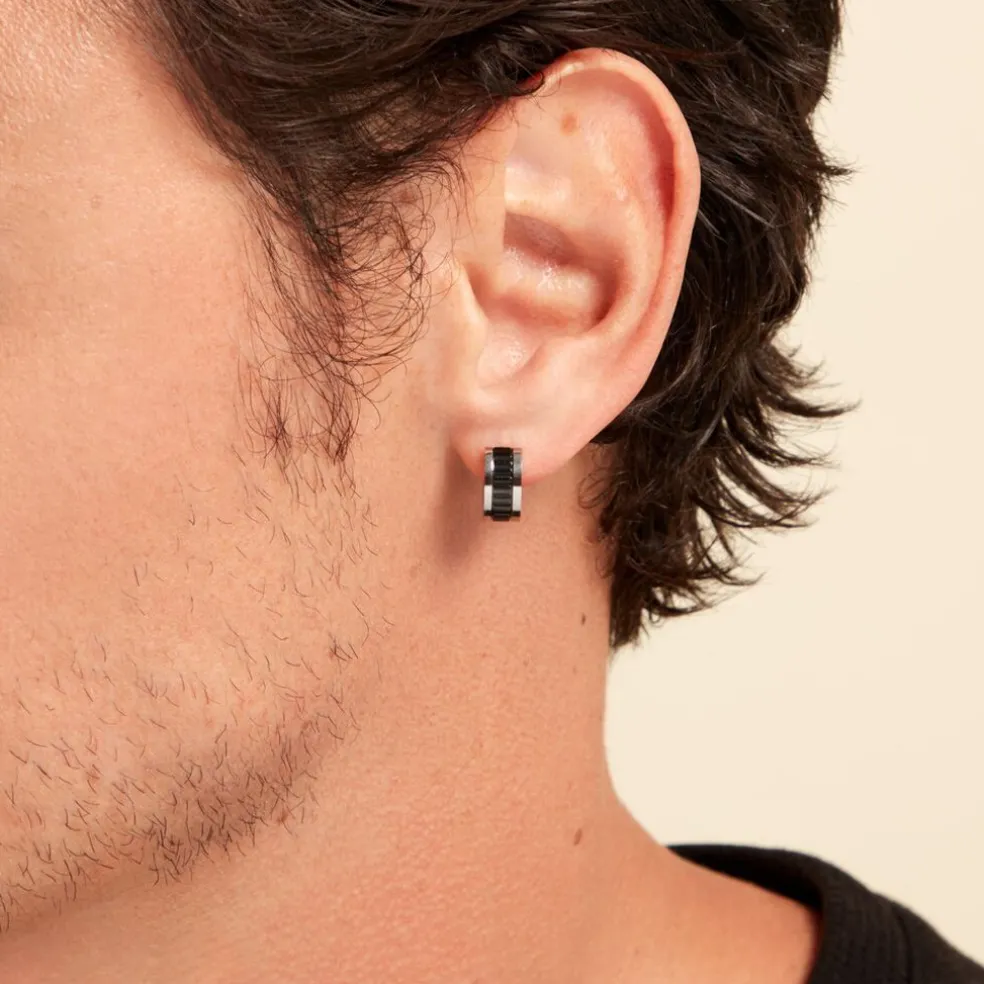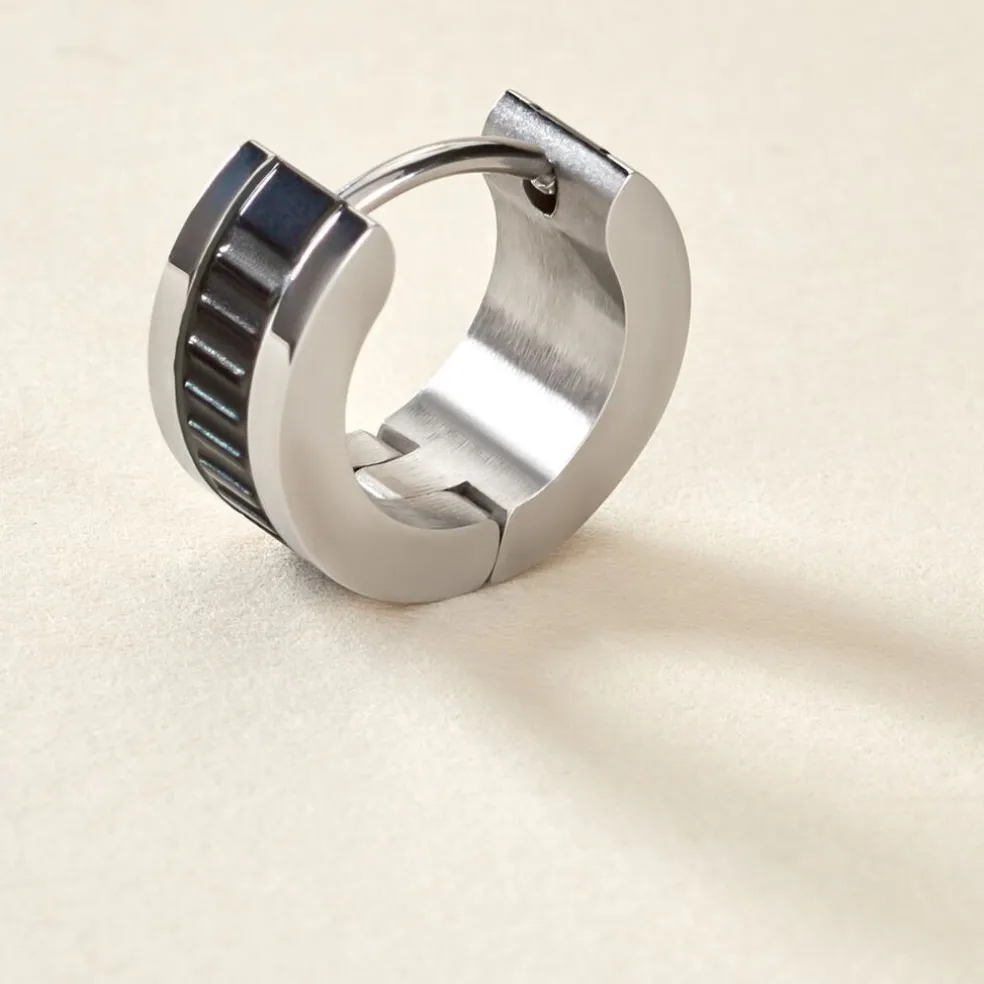 Créole Unitaire Acier Inoxydable Blanc Liseré Central Strié Noir Diamètre 9mm