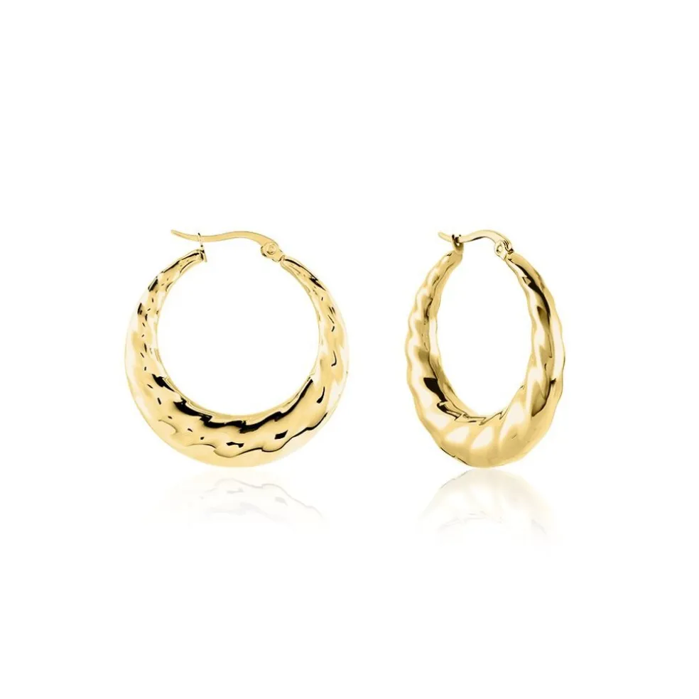 Créoles Acier Inoxydable Jaune Effet Vagues Diametre 22mm