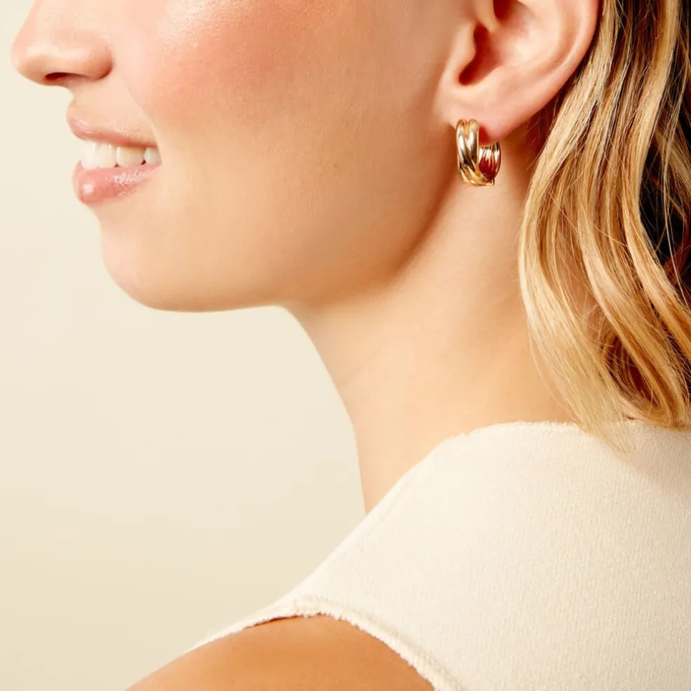 Créoles Plaqué Or Jaune Fils Croisés Largeur 2Cm Diamètre 20Mm