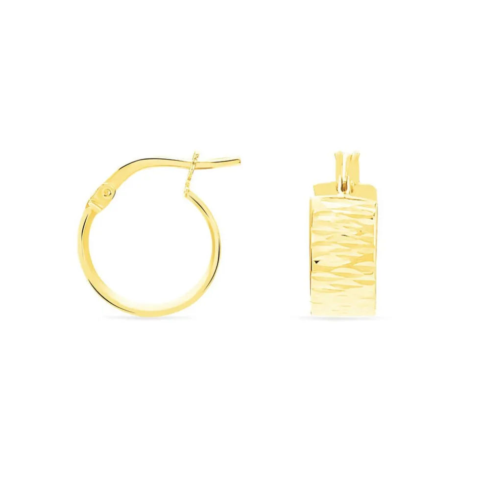 Créoles Or Jaune 375/1000 Fil Plat Effet Diamanté Largeur 4mm Diamètre 13mm