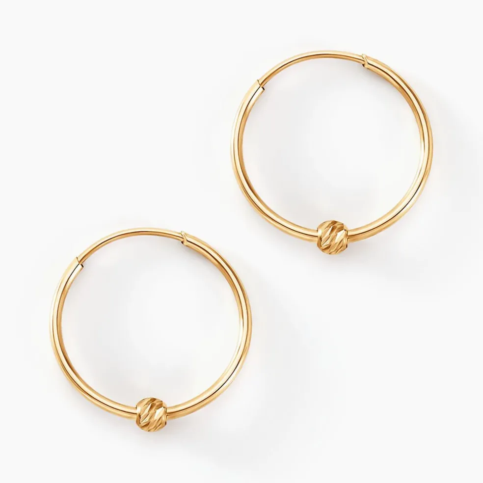 Creoles Or Jaune 375/100 Boule Effet Strie Fil Flexible Diametre 10mm