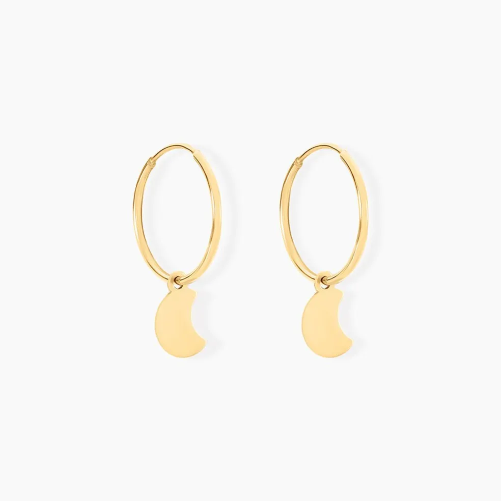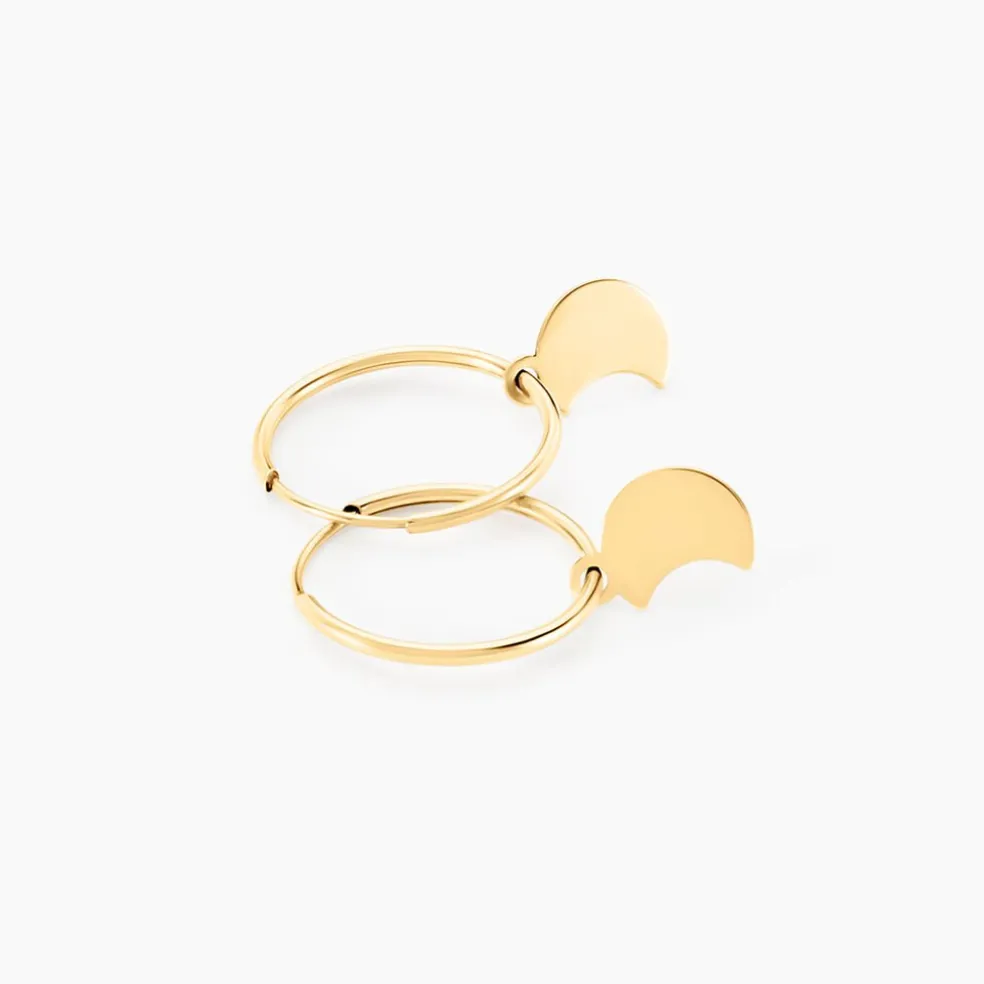 Créoles Or Jaune 375/1000 Pampilles Lunes Fil Flexible Lisse Largeur 0.8mm Diamètre 11mm