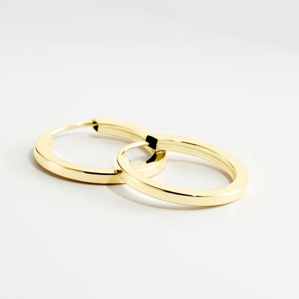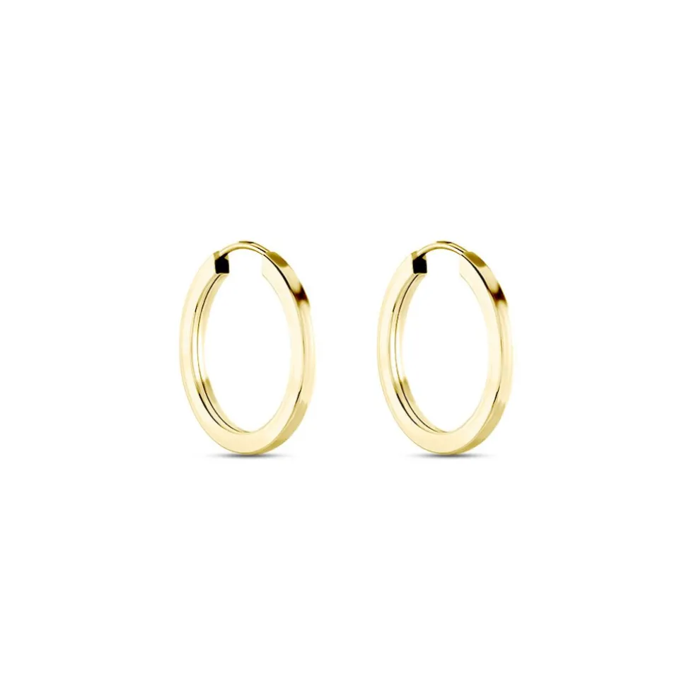 Creoles Or Jaune 375/1000 Fil Flexible Lisse Largeur 1.6mm Diamètre 15mm
